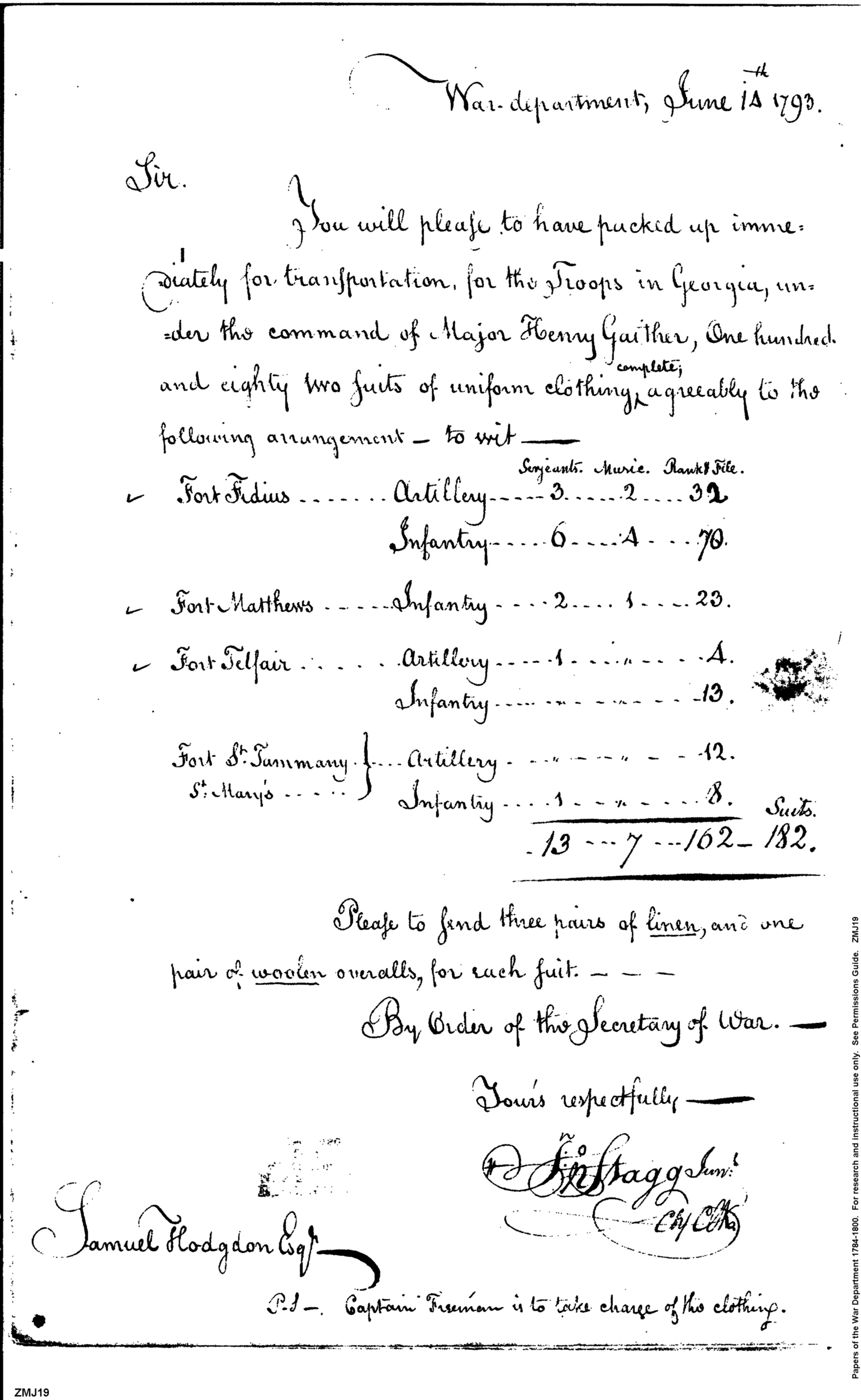 - Document: Requests Clothing to be Sent to Georgia