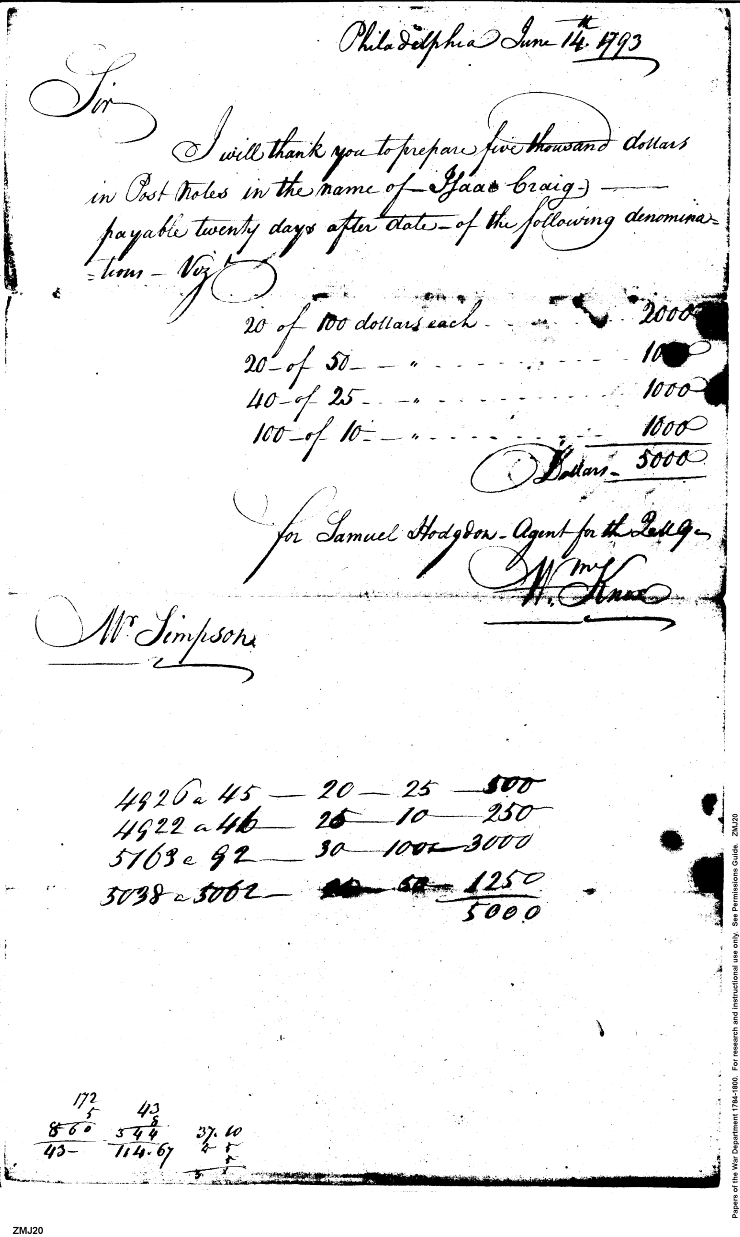 - Document: Requests Money to be Drawn for Isaac Craig
