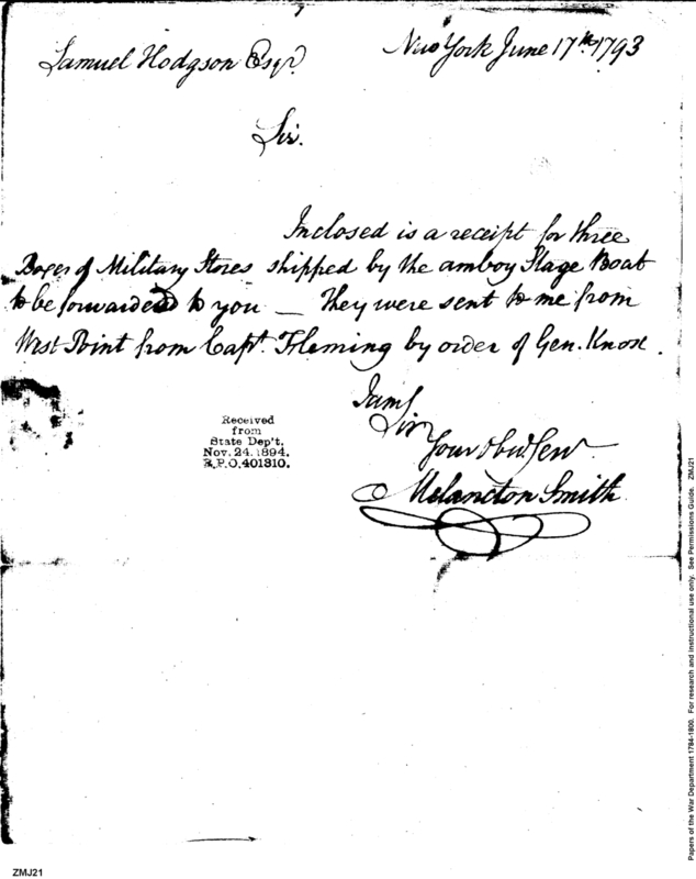 - Document: Receipt for Military Stores at West Point