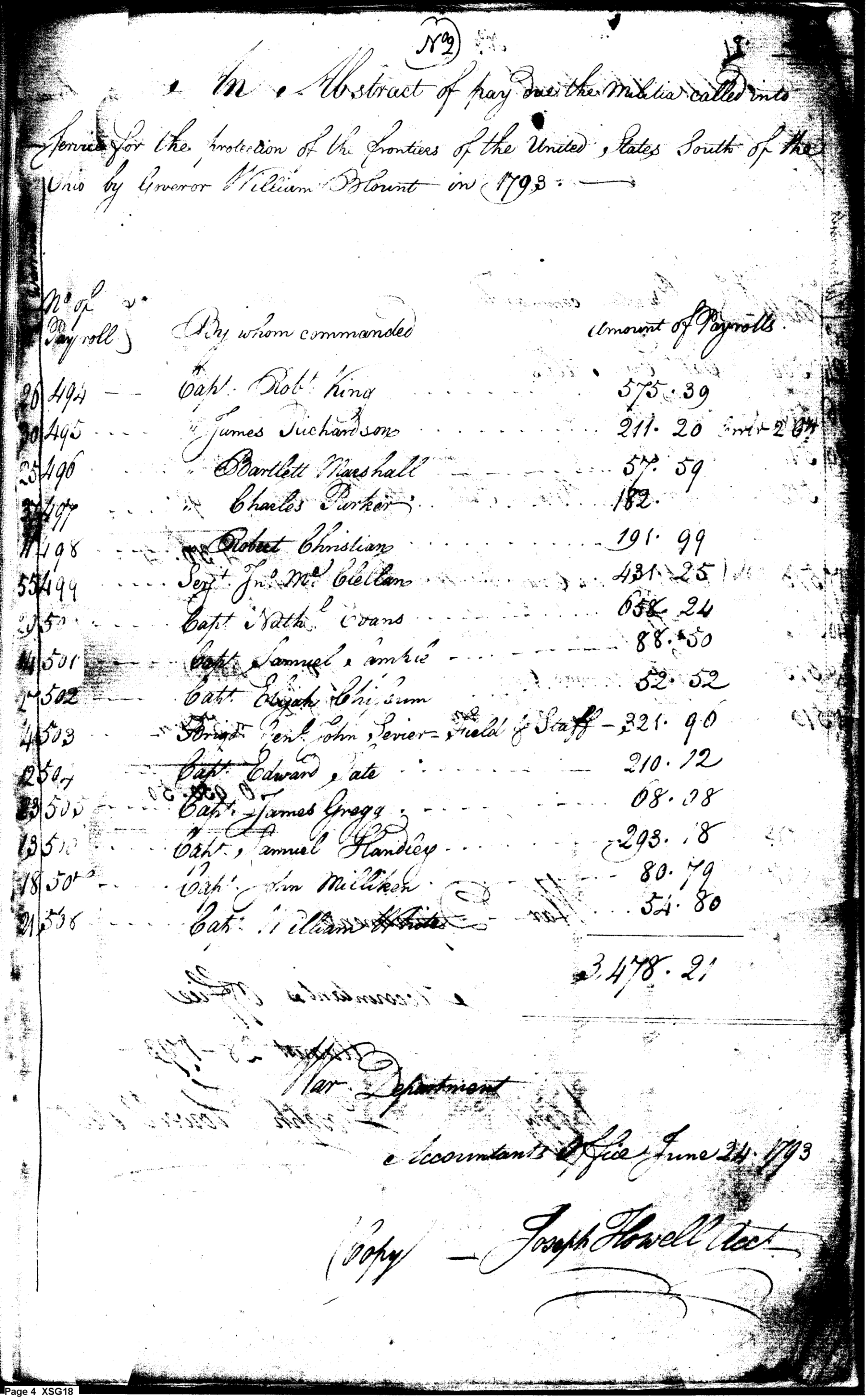- Document: Abstract of Pay Due Militia Southwest of the Ohio 1793