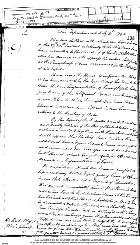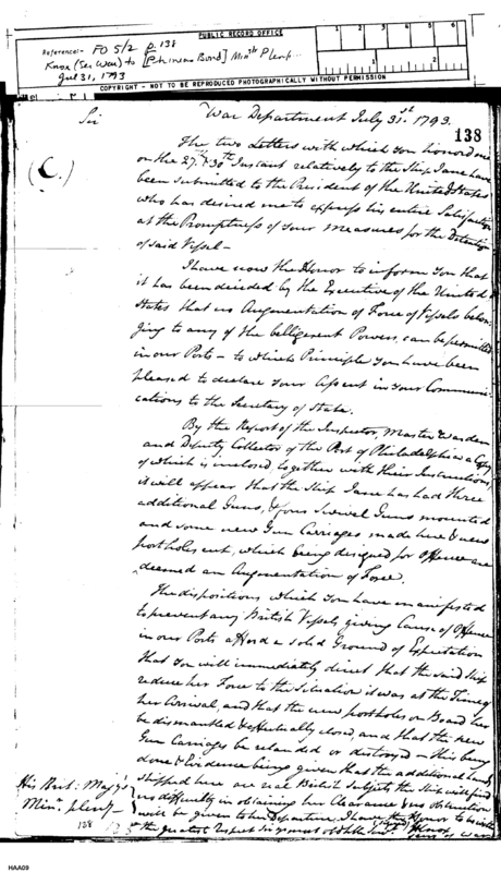 - In source: Collection: FO 5/2 Foreign Office Correspondence, America(United States), General Correspondence: Series II, 1793, Consuls for John Temple, Phineas Bond, George Miller, John Hamilton, Thomas MacDonogh, and Thomas William Moore.