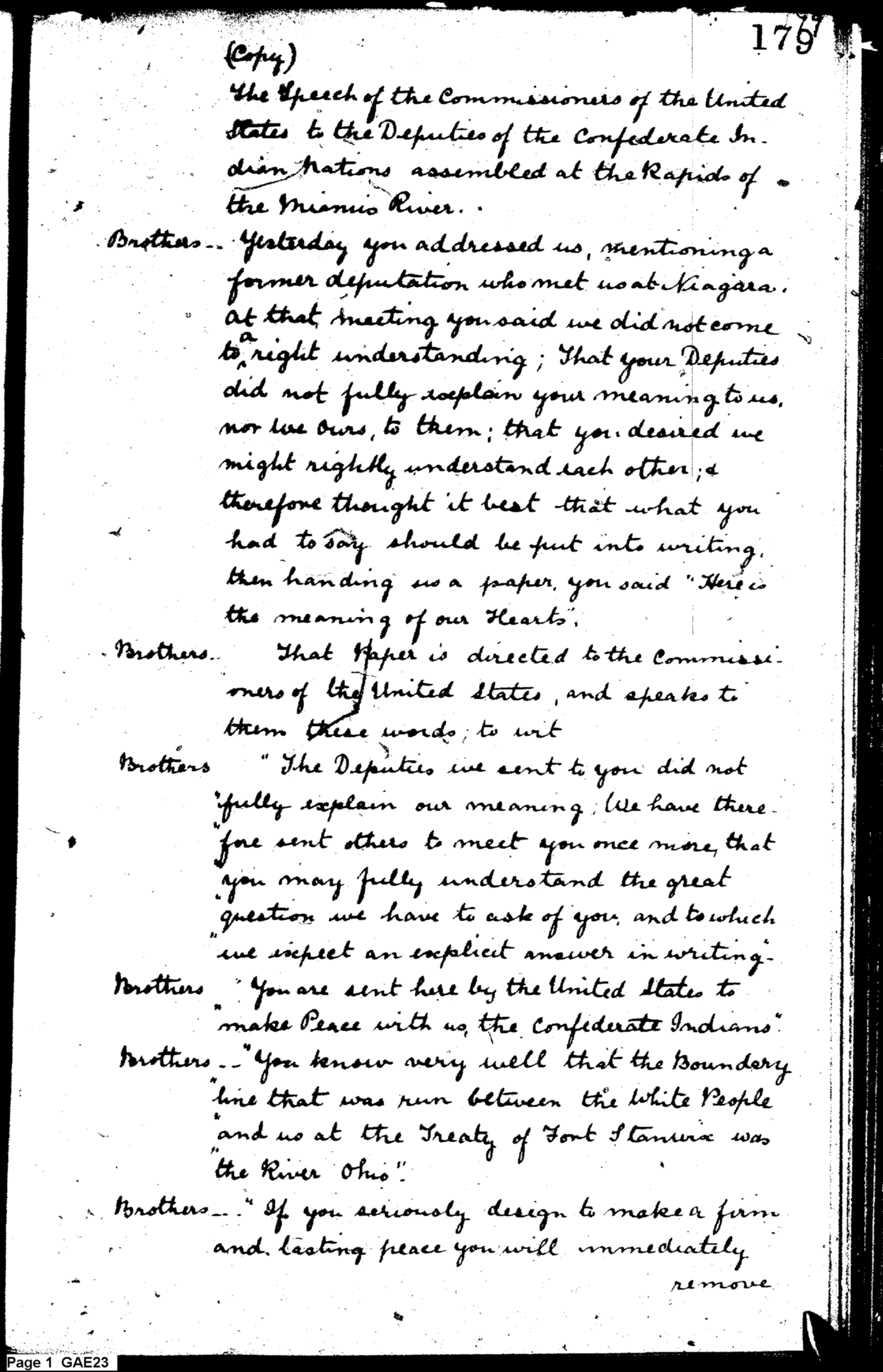 Document ViewerSpeech Regarding Possession of Land and Past Treaties with Indian Confederacy