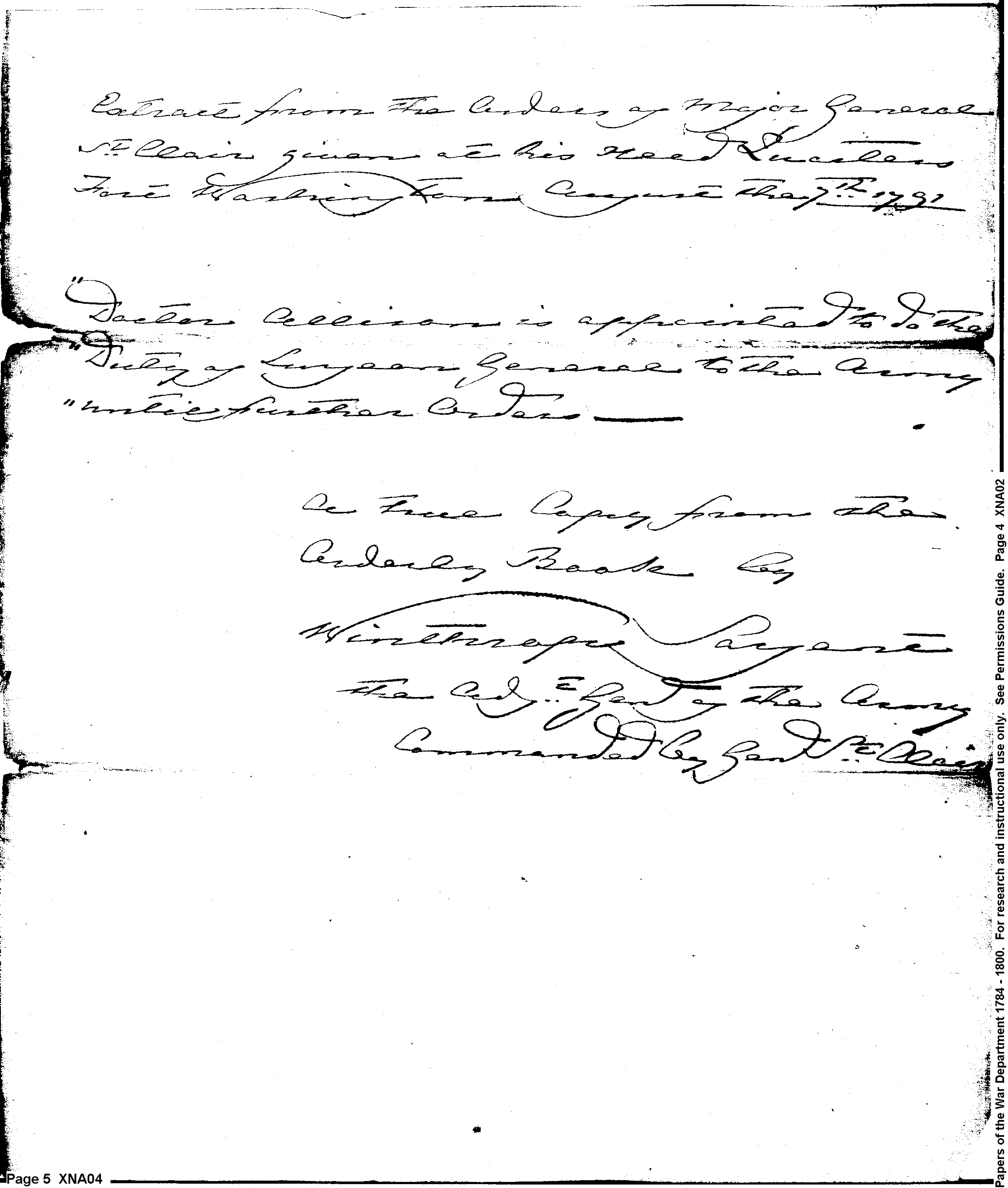 - In source: Collection: Post Revolutionary War Papers, 1784-1815. (RG94)