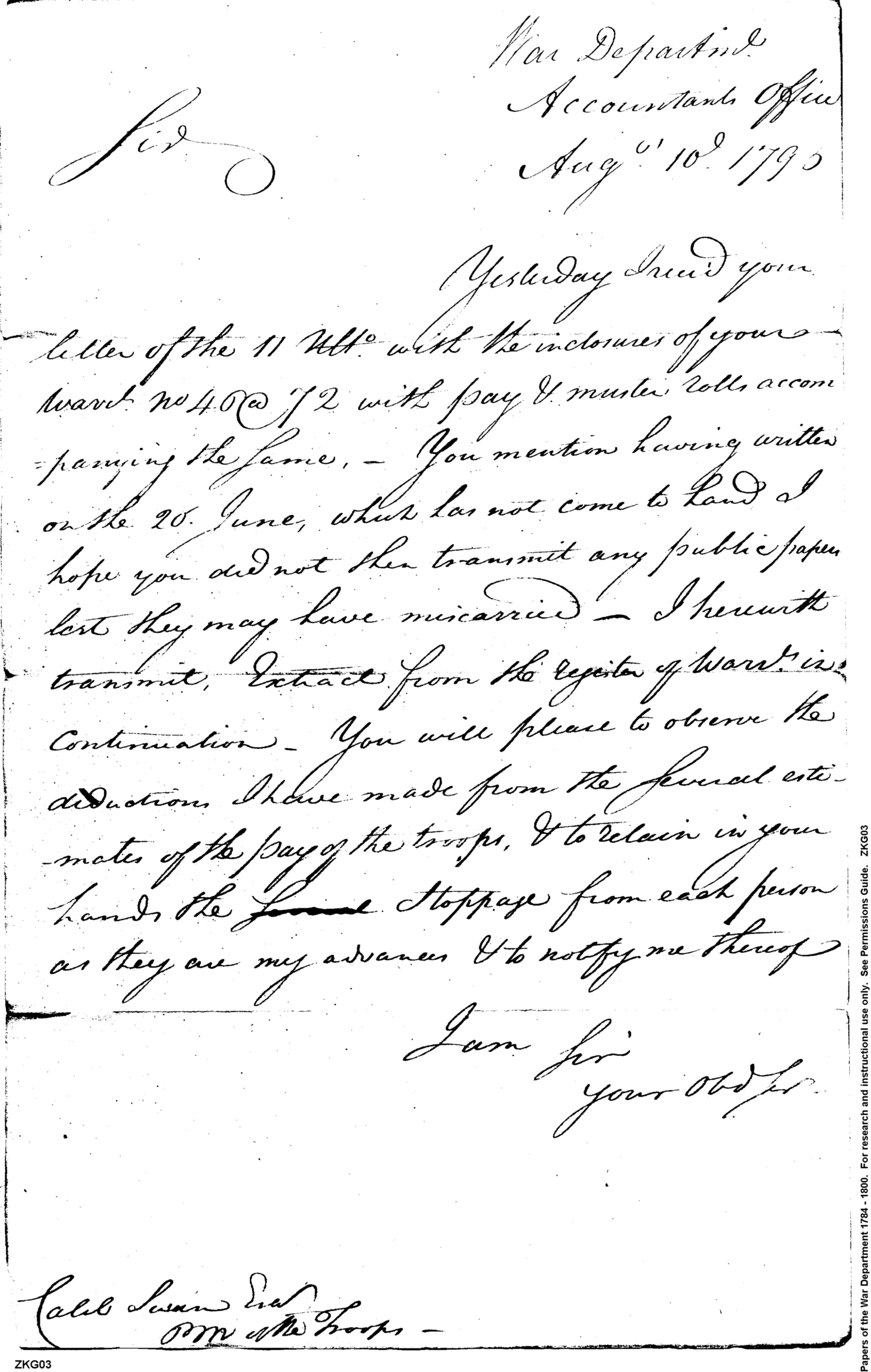 - Document: Deductions from the Estimates of the Pay of the Troops, Etc.