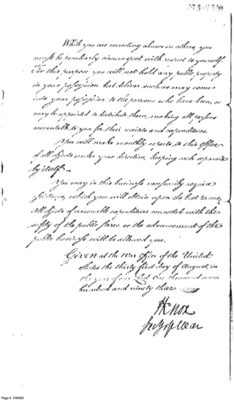 - Document: Instructions from Henry Knox Secretary of War