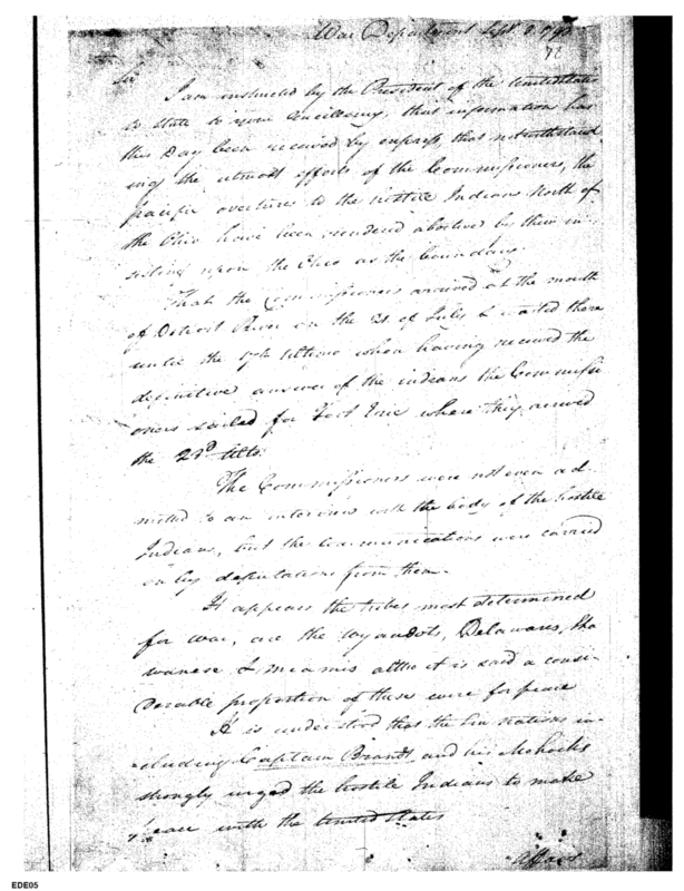 - Document: Failure to Secure Peace With Northwest Indians; Discussion of Militia