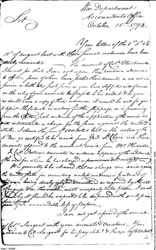 - In source: Collection: Post Revolutionary War Papers, 1784-1815. (RG94)