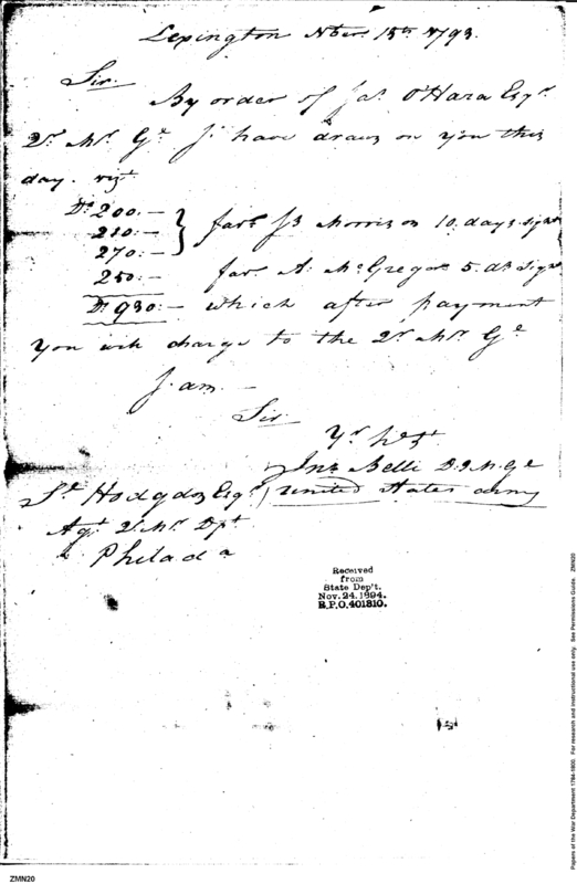 Post Revolutionary War Papers, 1784-1815. (RG94)