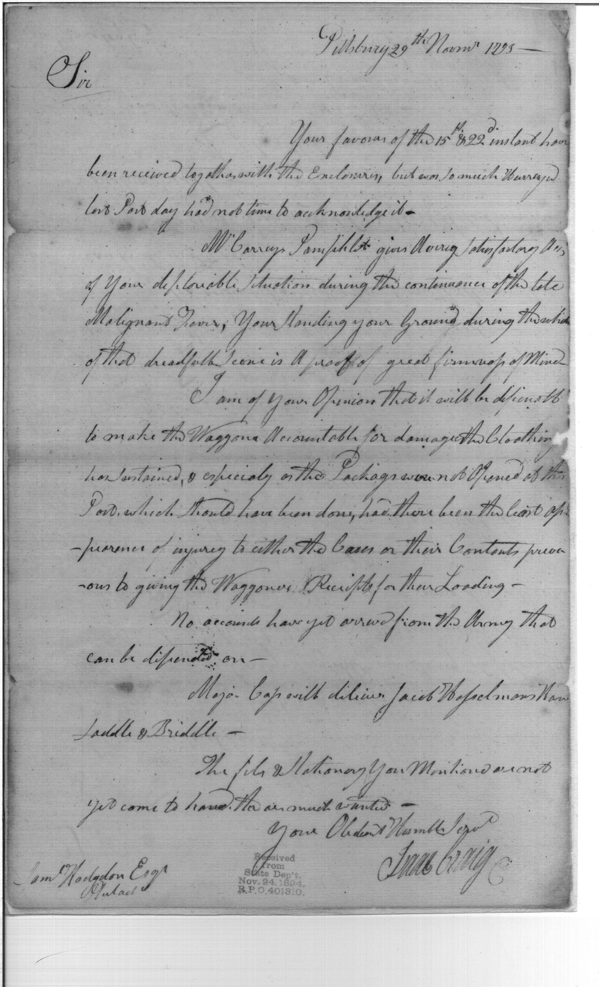 - In source: Collection: Post Revolutionary War Papers, 1784-1815. (RG94)