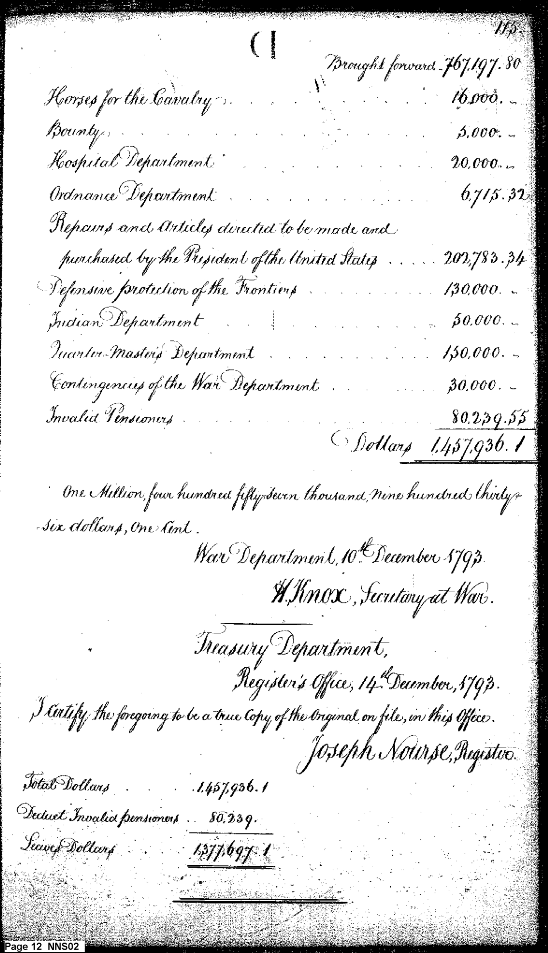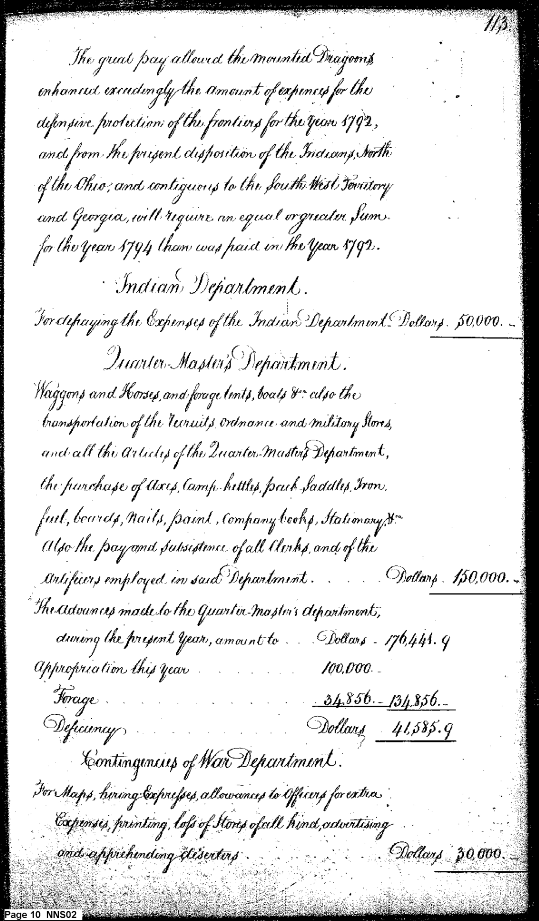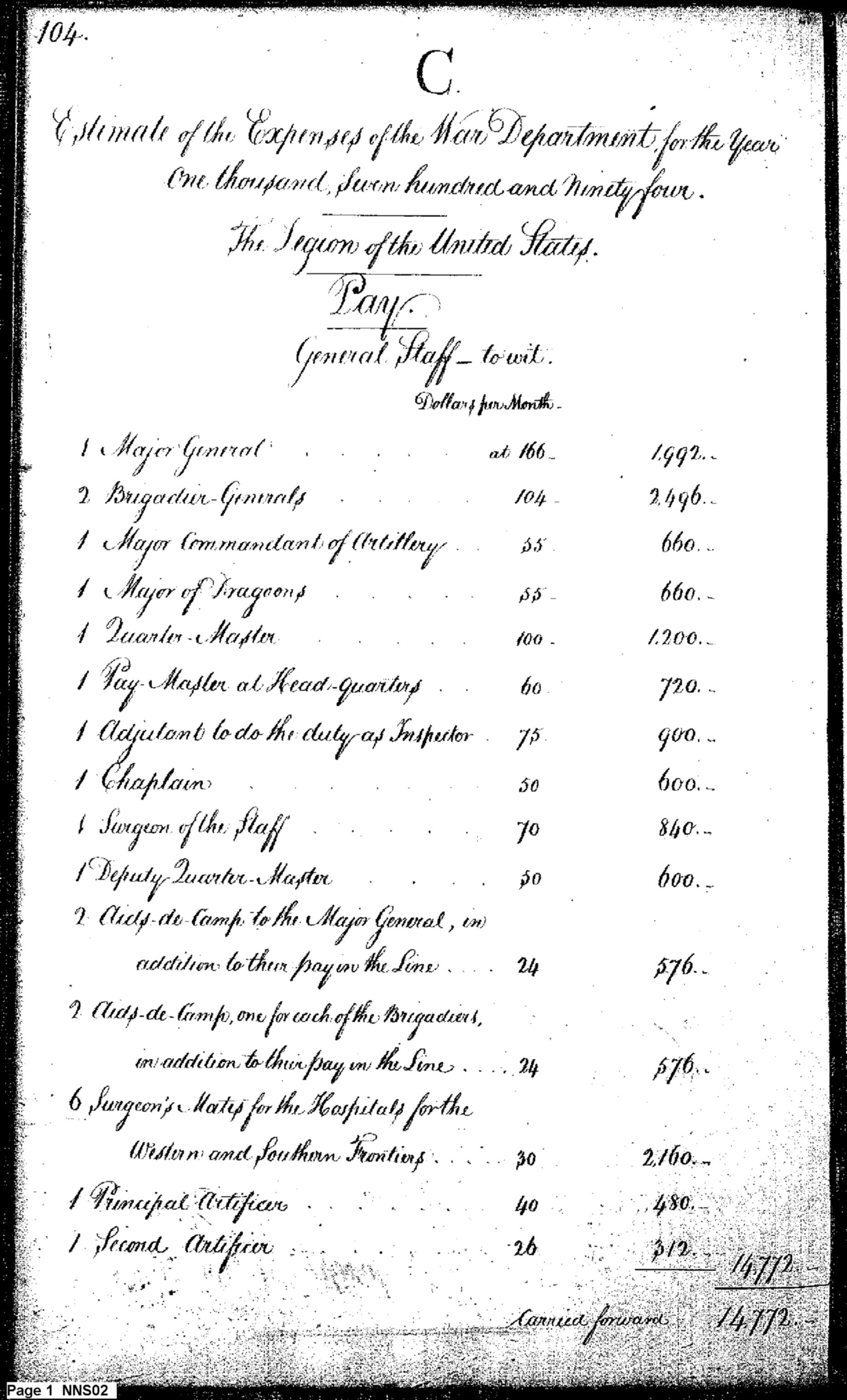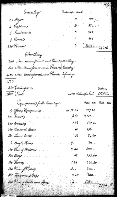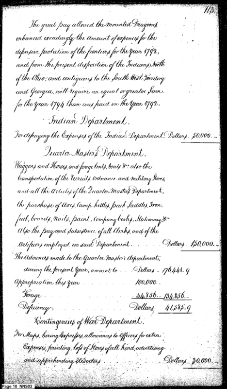 - Document: Estimate of Expenses of the War Department for 1794