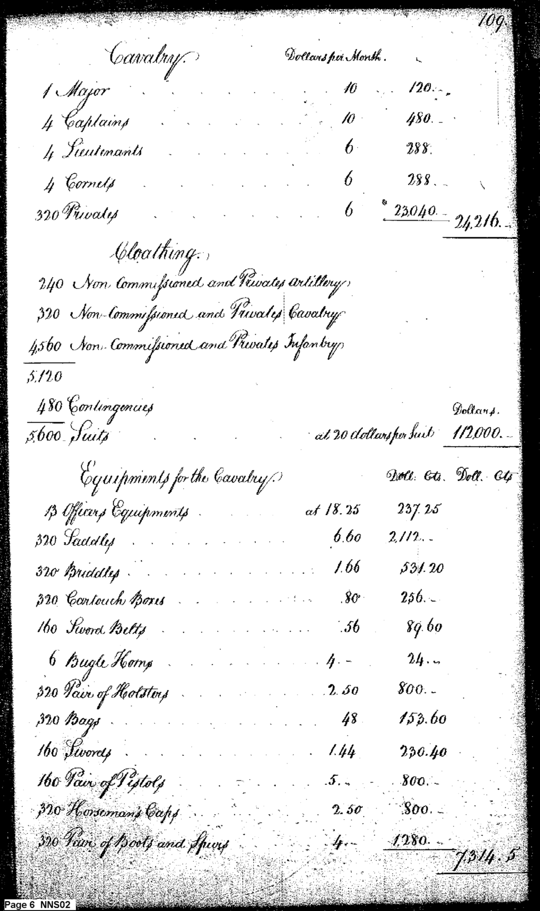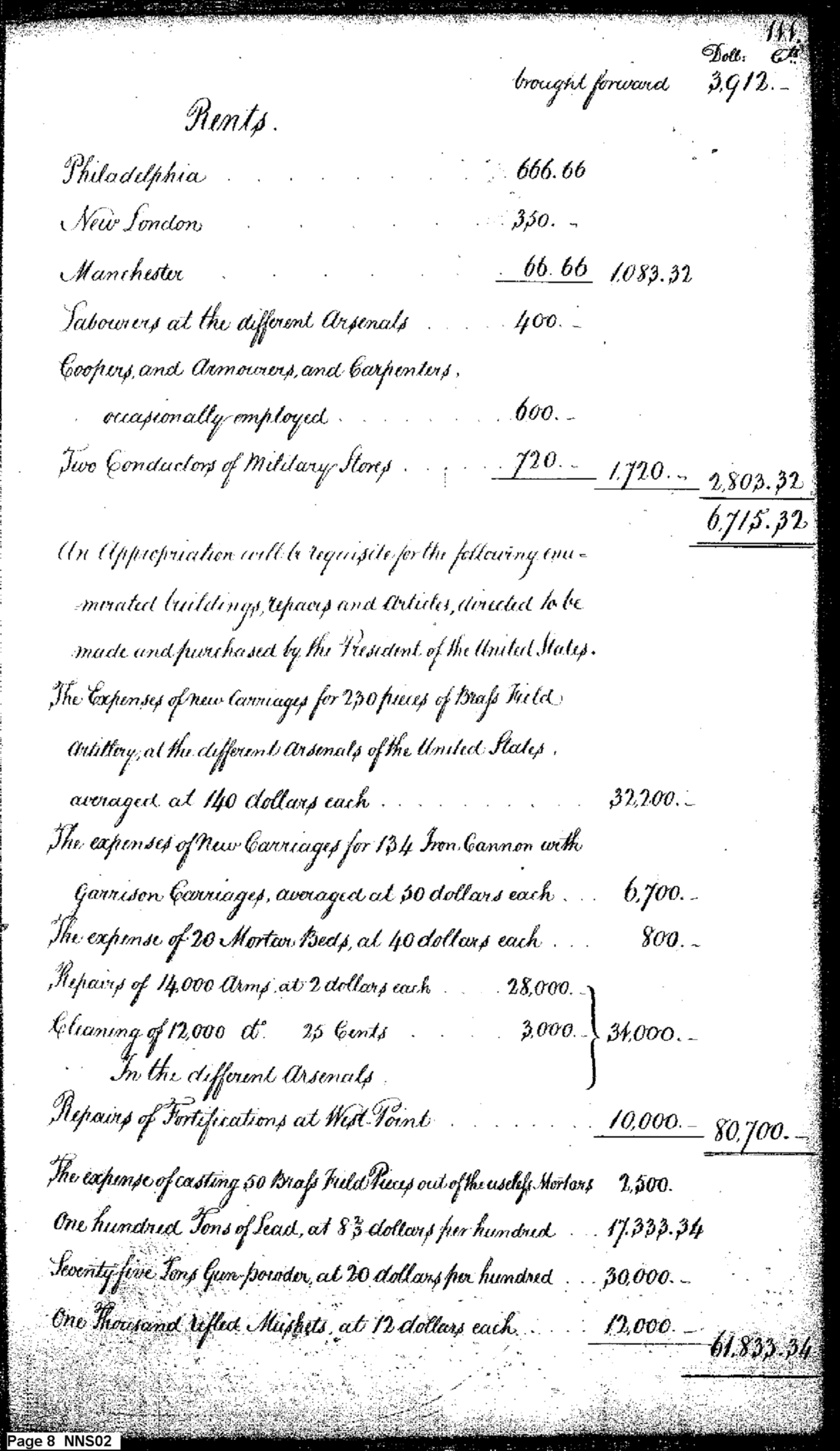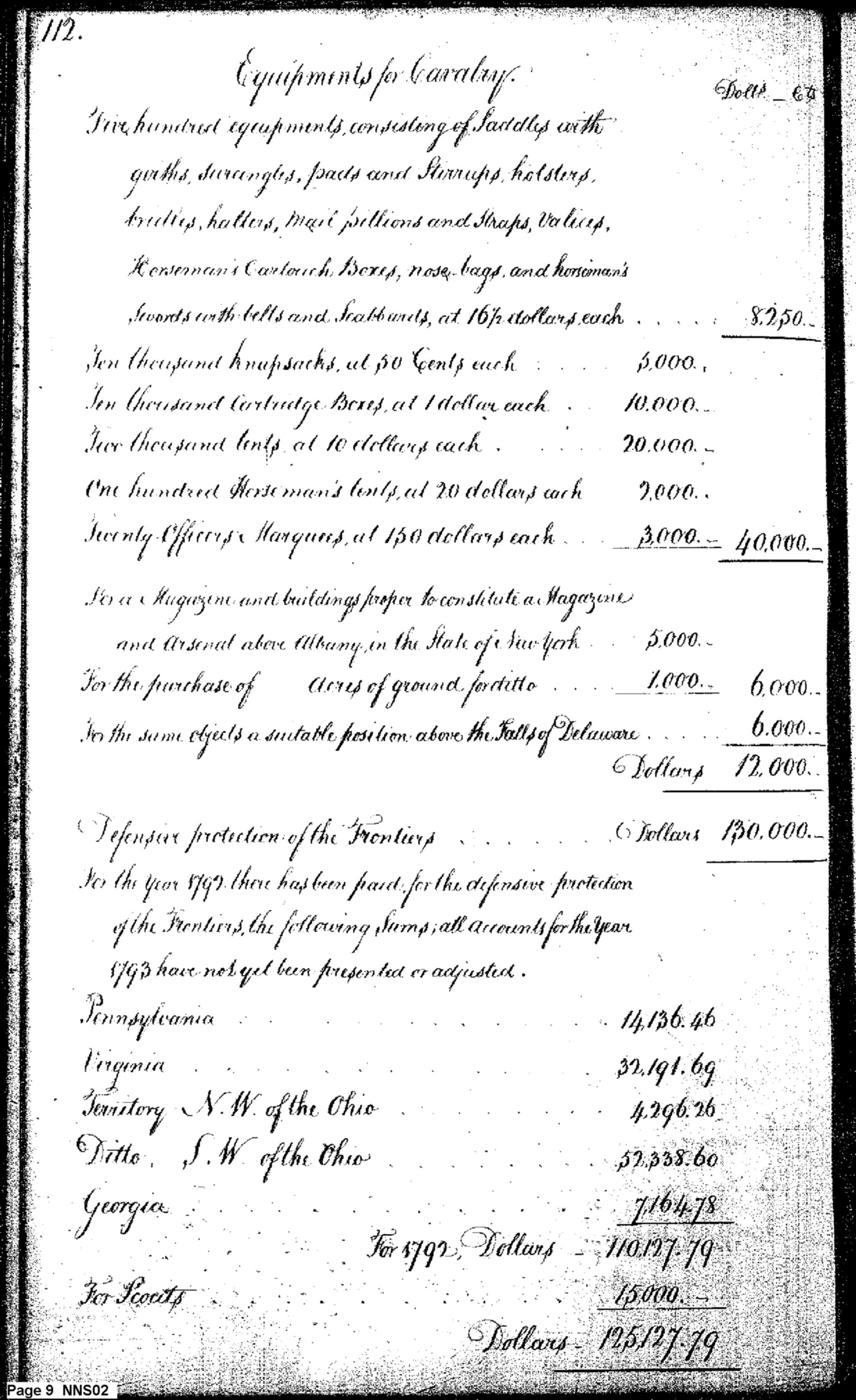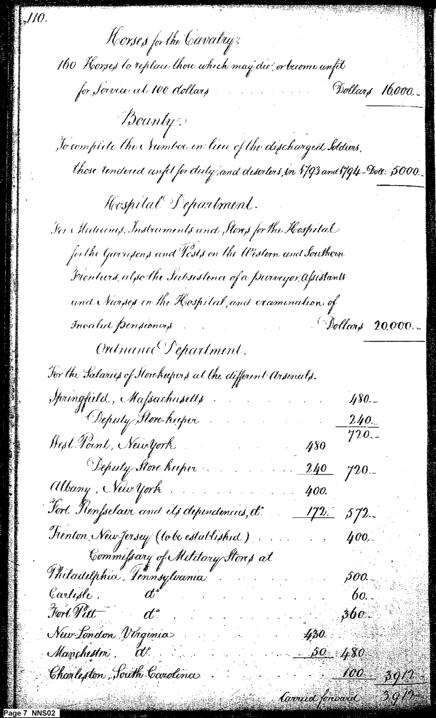 - Document: Estimate of Expenses of the War Department for 1794