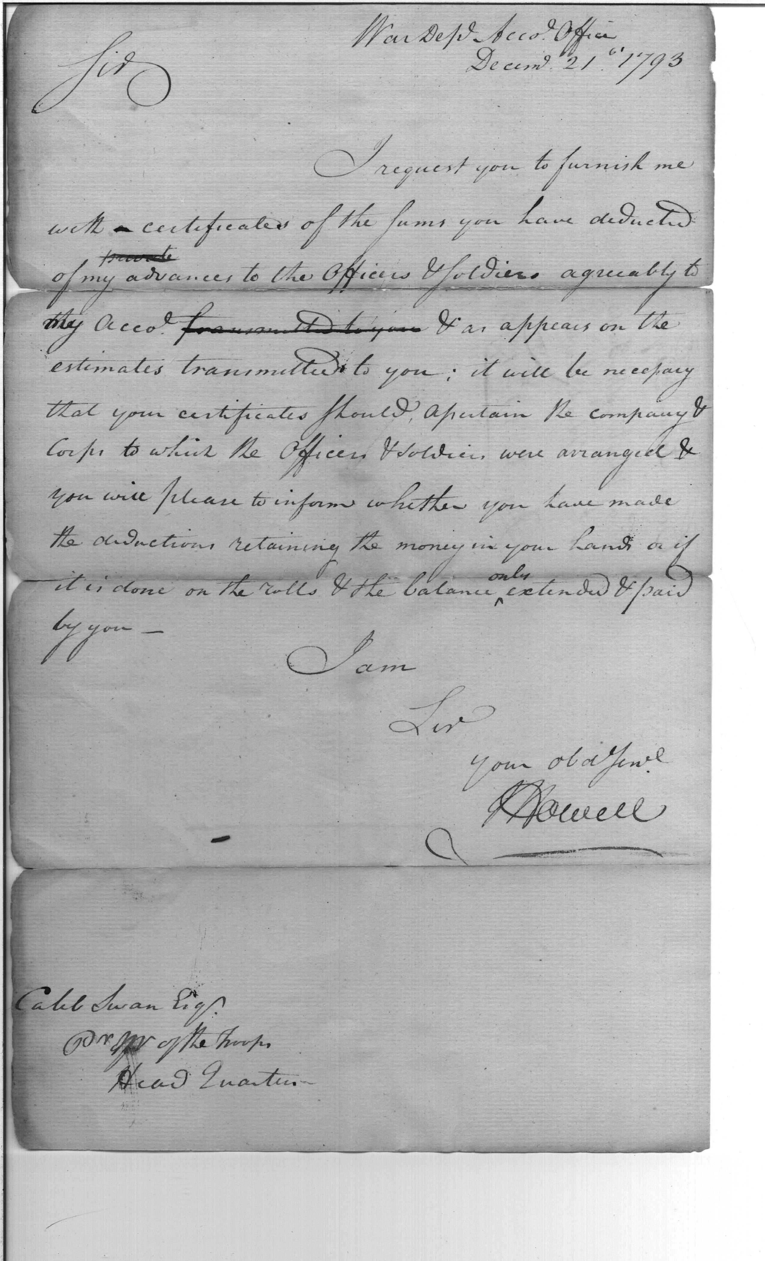 - Document: Sums Deducted from Advances to Officers & Soldiers