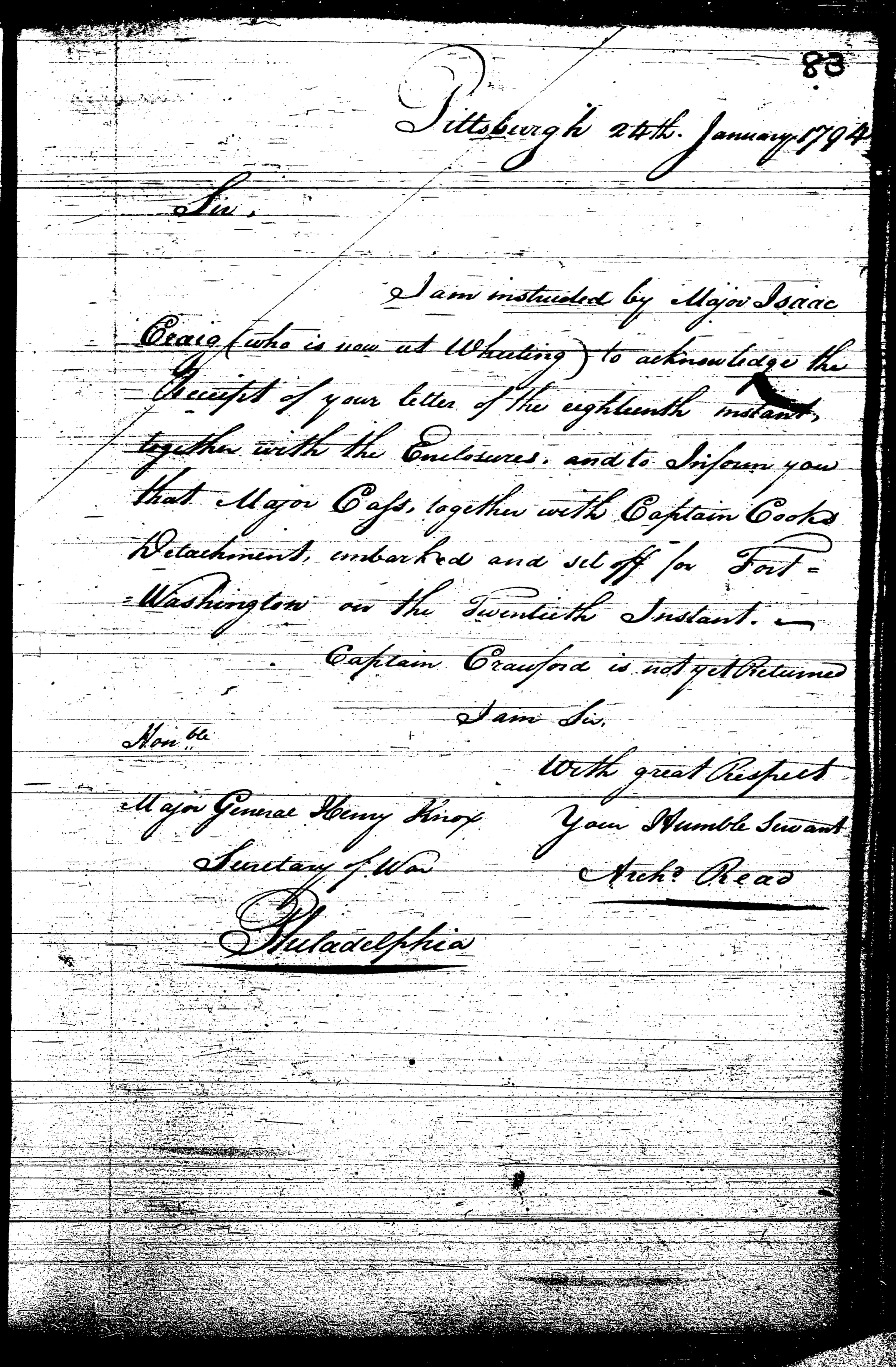 Document ViewerLetters; Major Cass and Captain Cook; Captain Crawford