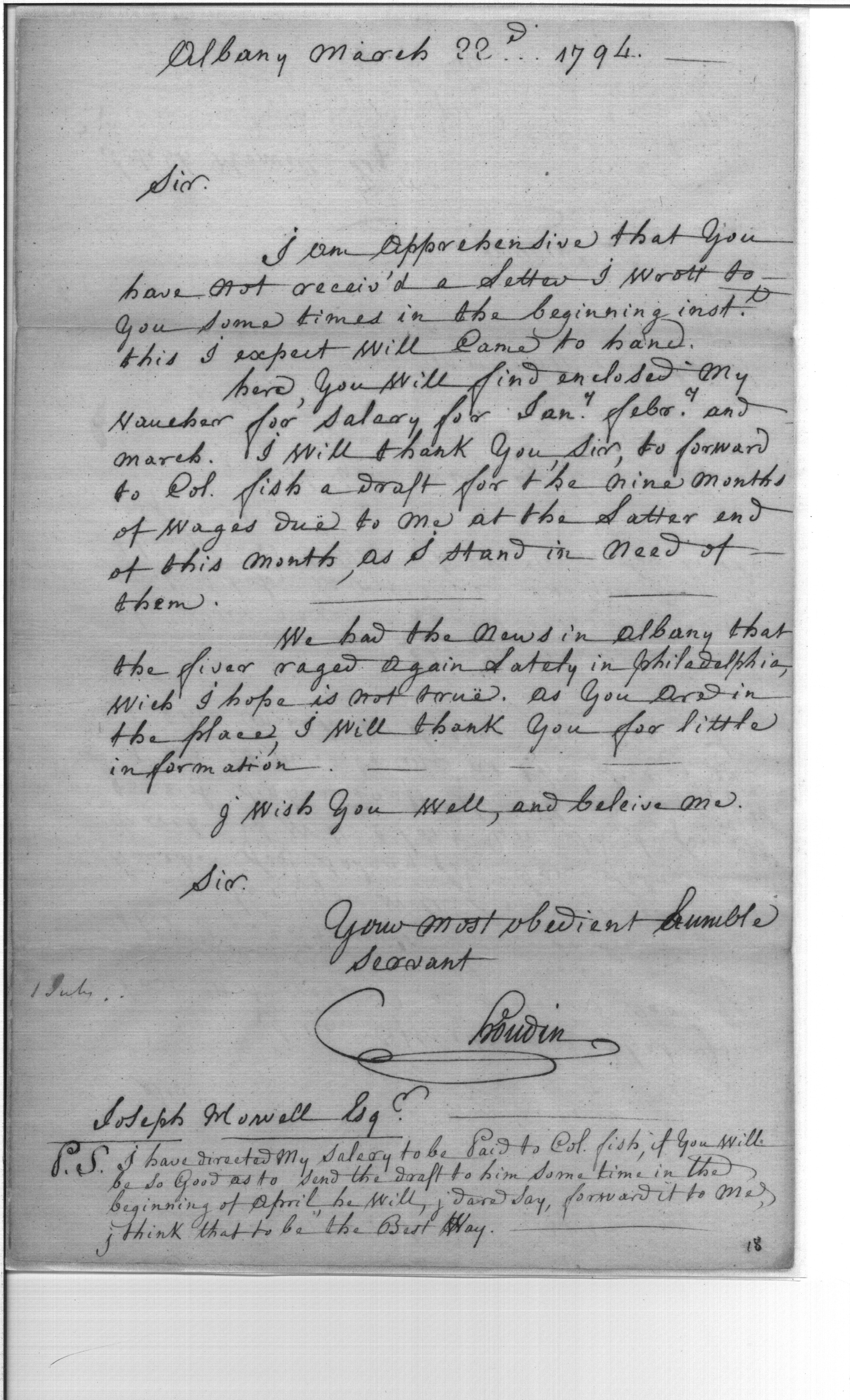 - Document: Wages to be Paid to Colonel Fish, Request for Information on the River Surge in Philadelphia