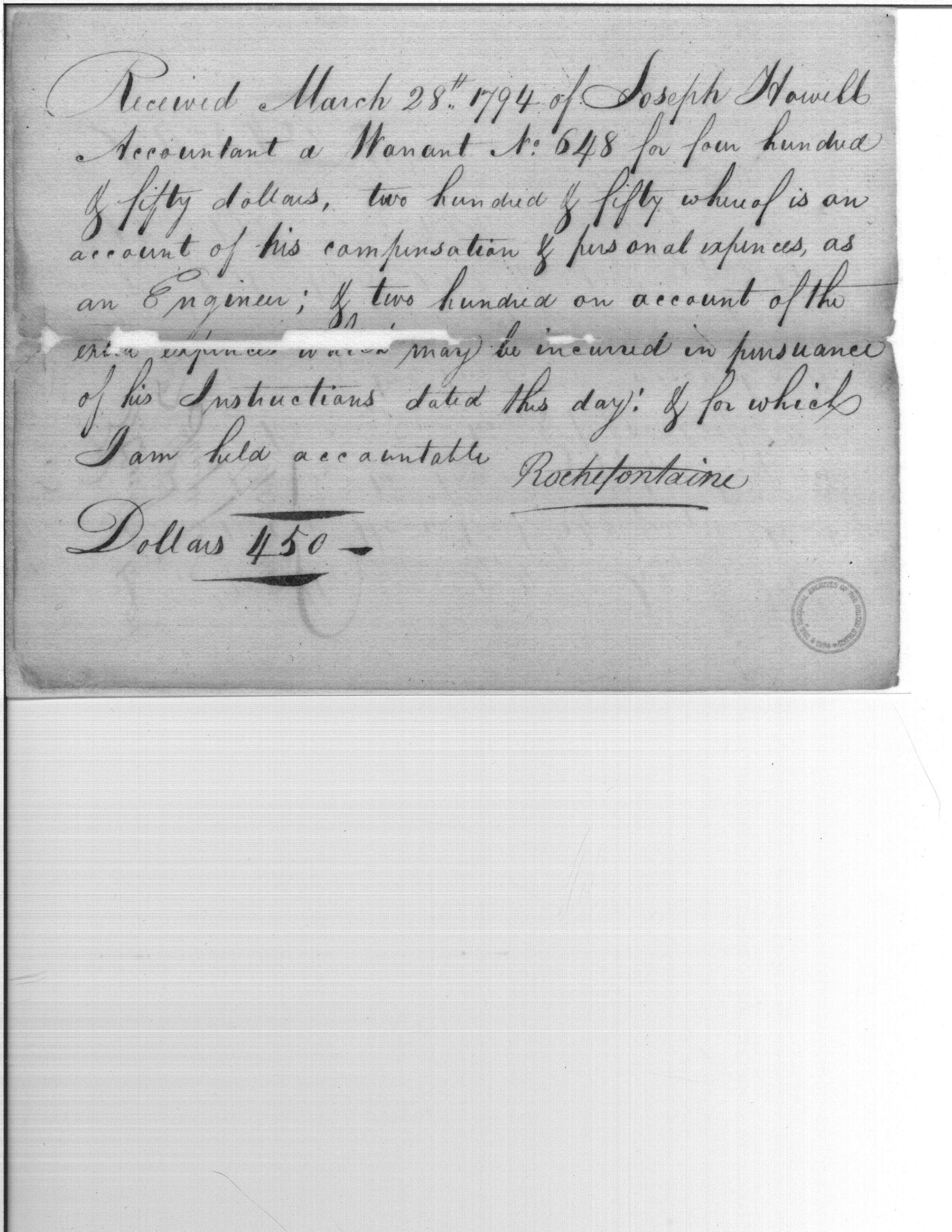 - Document: Receipt of Stephen Rochefontaine for personal expenses as engineer