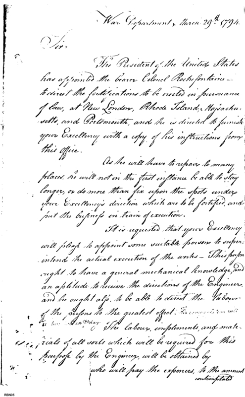 - Document: Knox Informing Huntington of Rochefontaine's Appointment to Direct the Building of Fortifications in New England