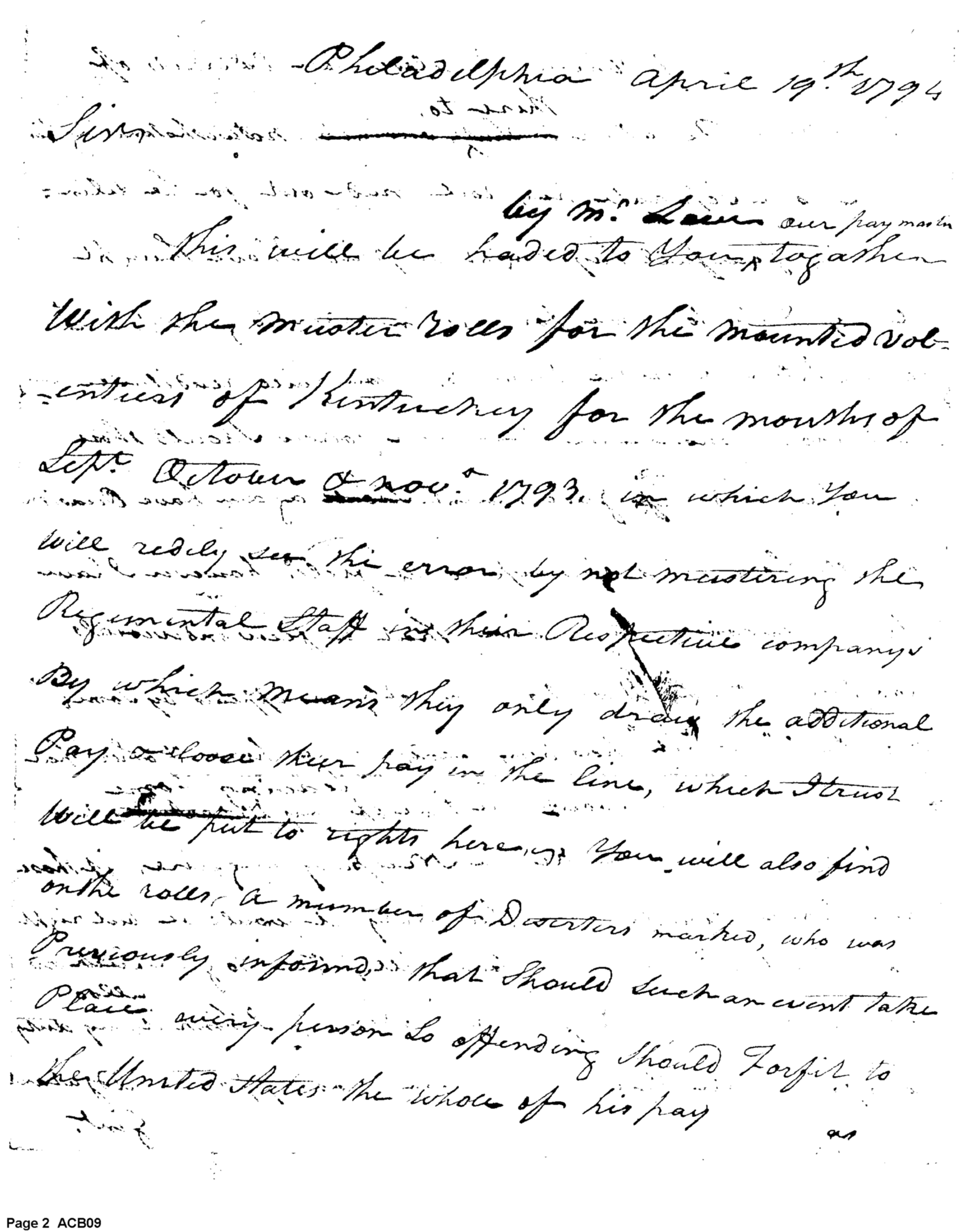 - Document: Deserter Forfeit Pay, Enclosed Muster Rolls for Mounted Volunteers of Kentucky