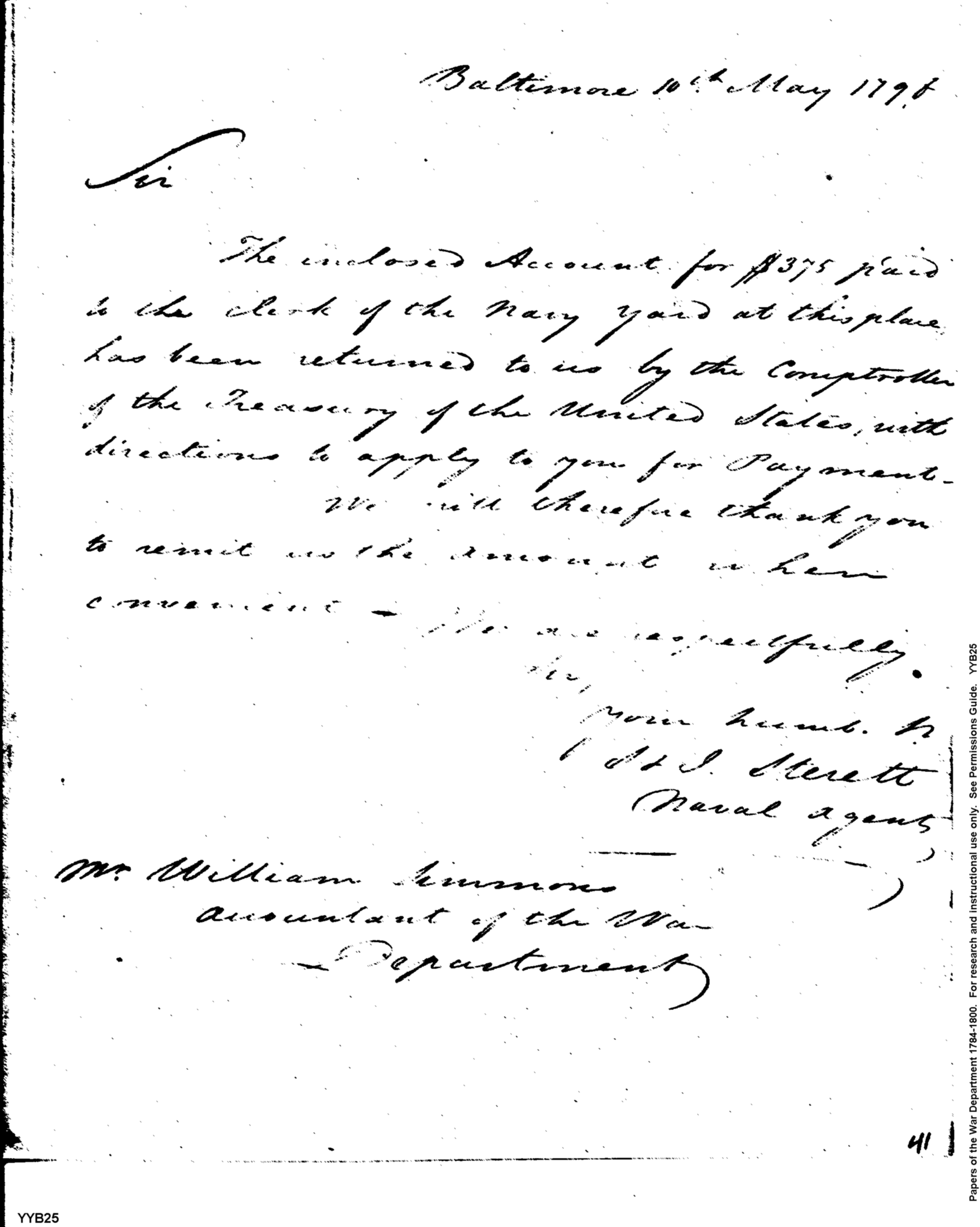 - Document: Returned Account Paid to Clerk of Navy Yard Submitted for Payment