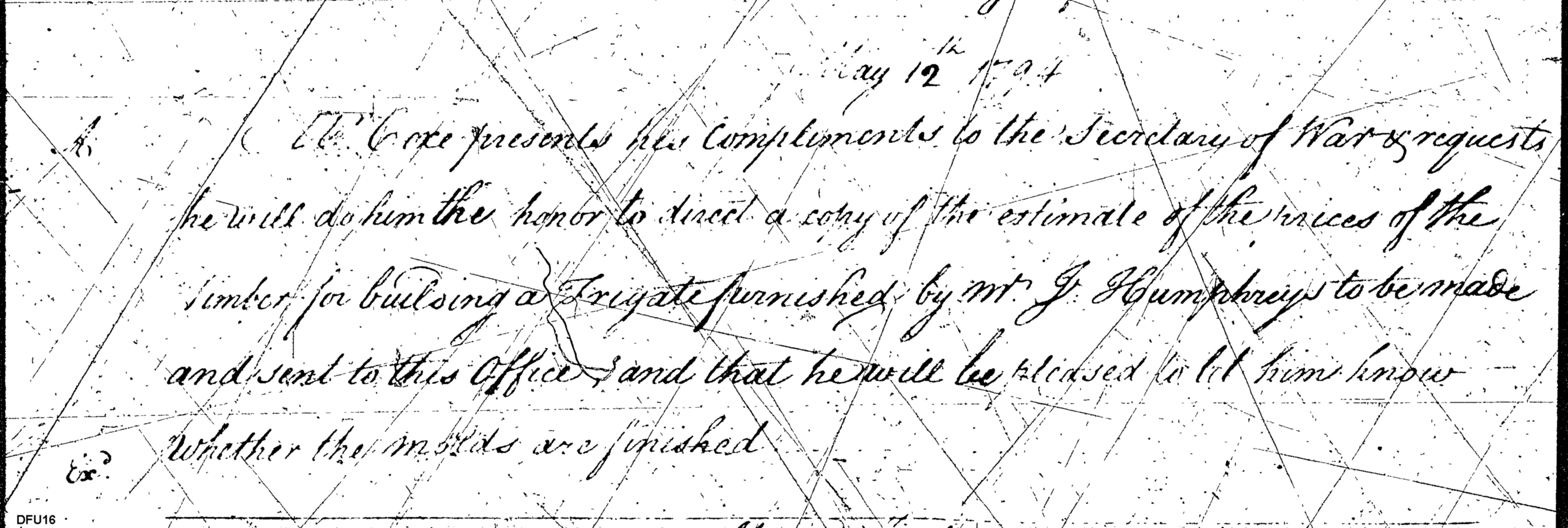 - In source: Collection: Letters Sent (Letterbook) of Commissioner of the Revenue, Tench Coxe, Relating to War Department Procurement, Apr 14, 1794-Aug 26, 1796. (RG75) (M74)