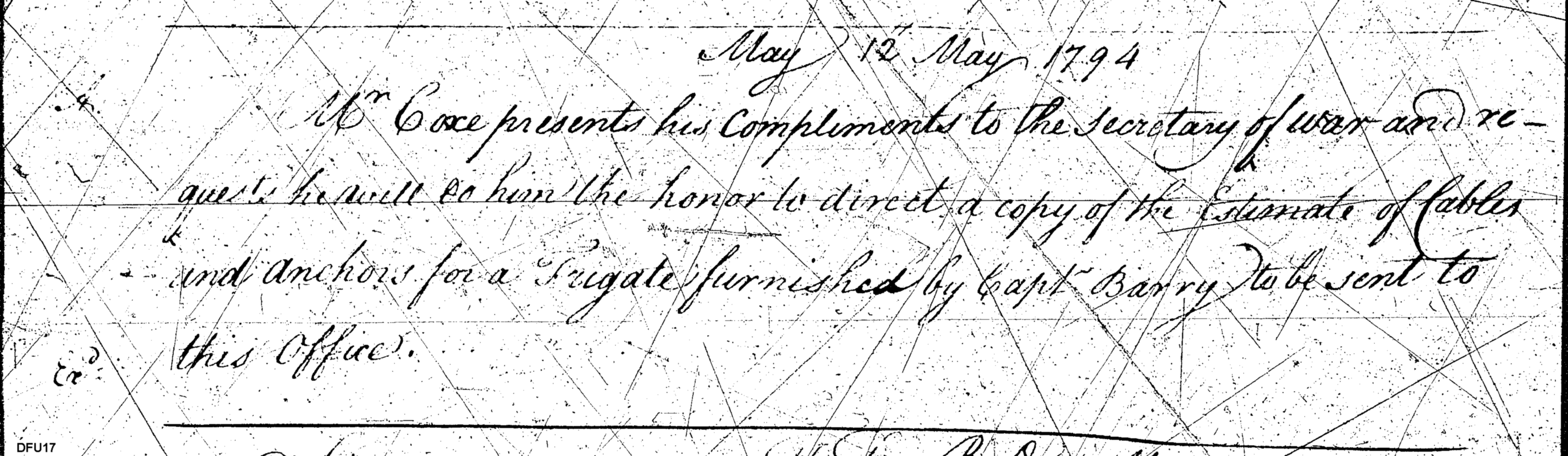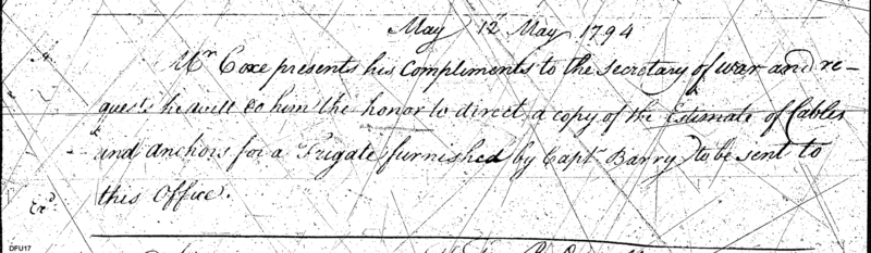 - In source: Collection: Letters Sent (Letterbook) of Commissioner of the Revenue, Tench Coxe, Relating to War Department Procurement, Apr 14, 1794-Aug 26, 1796. (RG75) (M74)