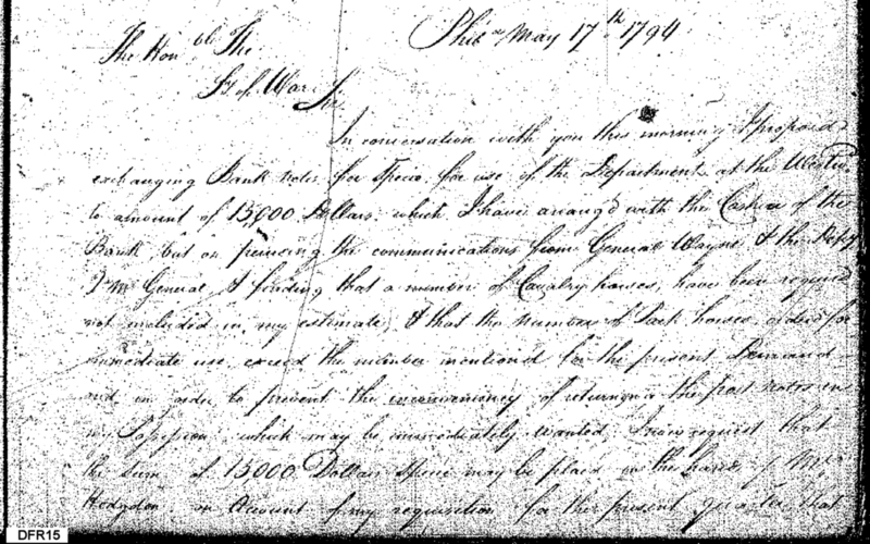 - In source: Collection: Letters Sent (Letterbook) by Quartermaster General James O'Hara, Apr 19, 1792-May 17, 1794. (RG92)