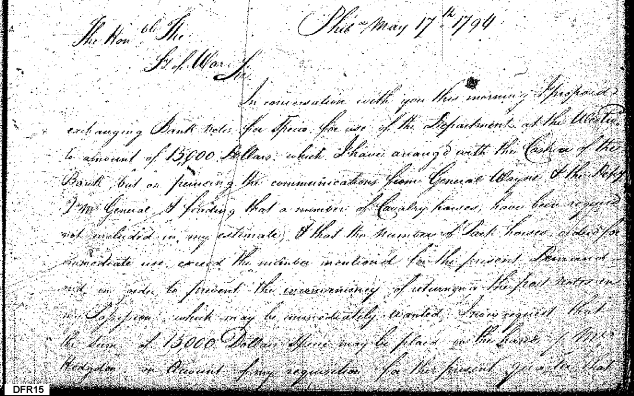 - Document: Suggests Exchange of Bank Notes for Specie; Discusses Horses