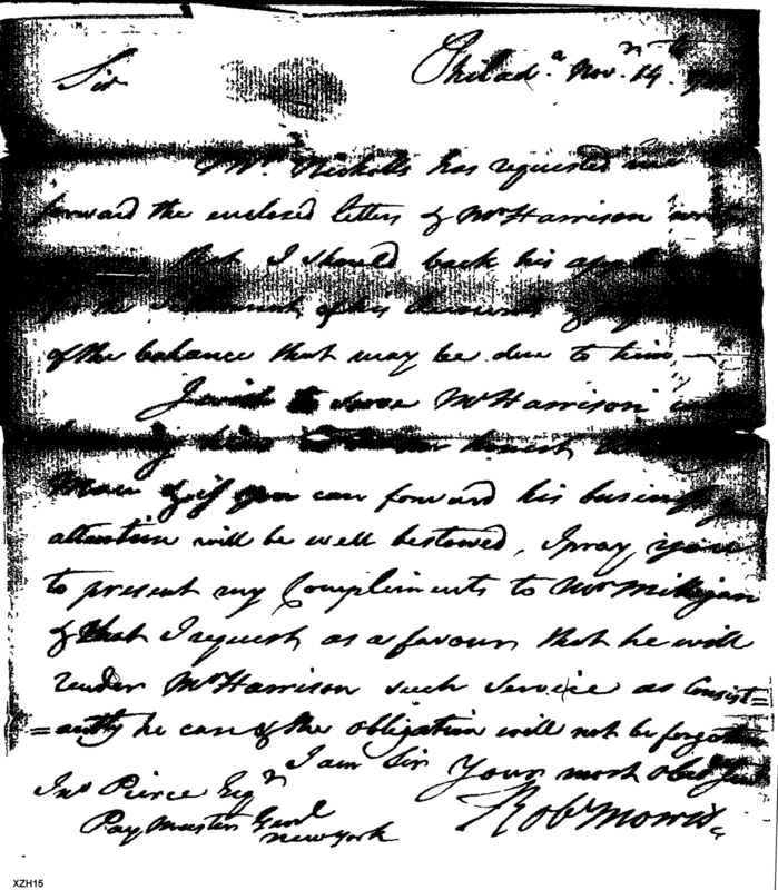 - Document: Robert Morris requests Mr. Harrison's business from Pierce
