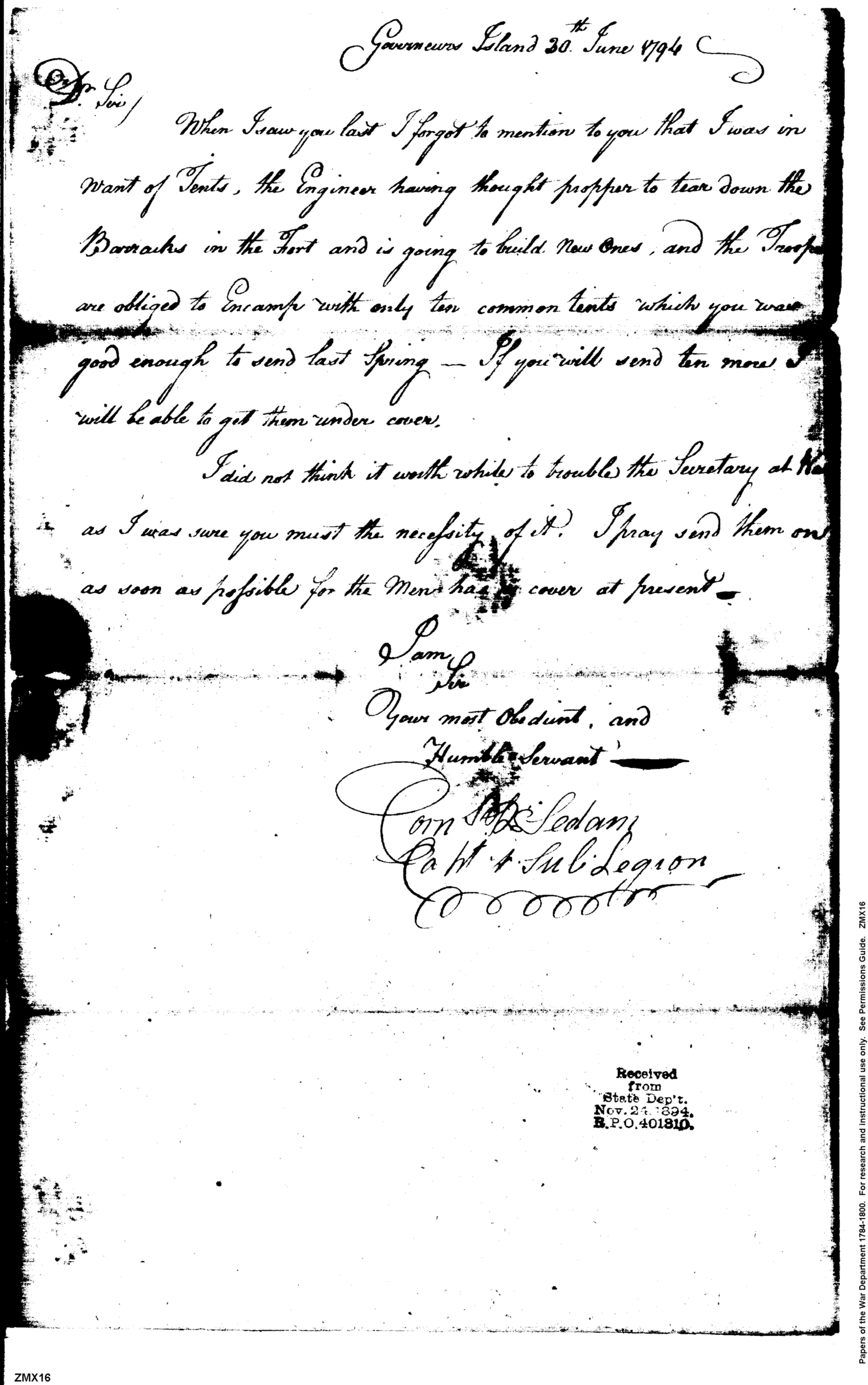 Post Revolutionary War Papers, 1784-1815. (RG94)