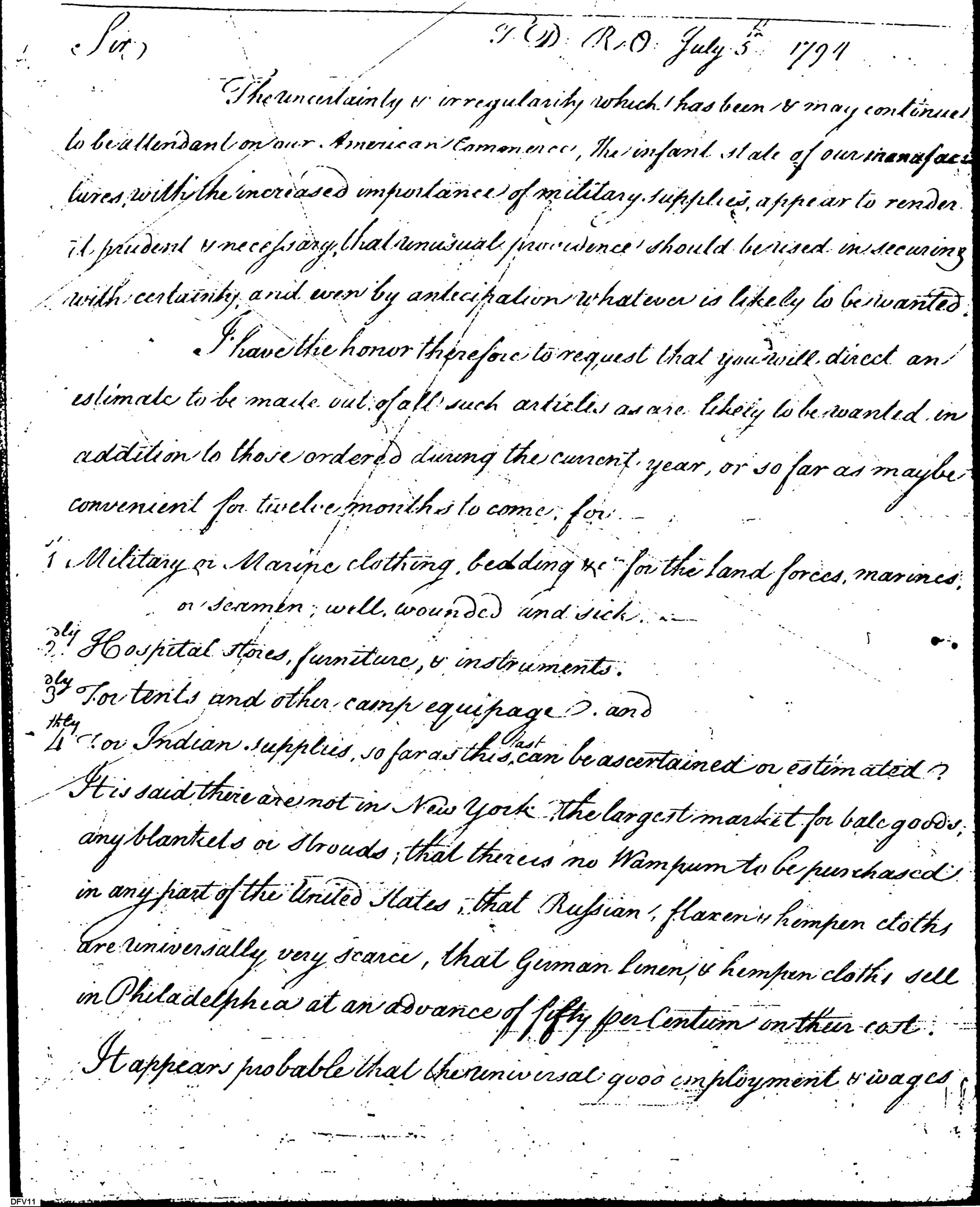 - In source: Collection: Letters Sent (Letterbook) of Commissioner of the Revenue, Tench Coxe, Relating to War Department Procurement, Apr 14, 1794-Aug 26, 1796. (RG75) (M74)