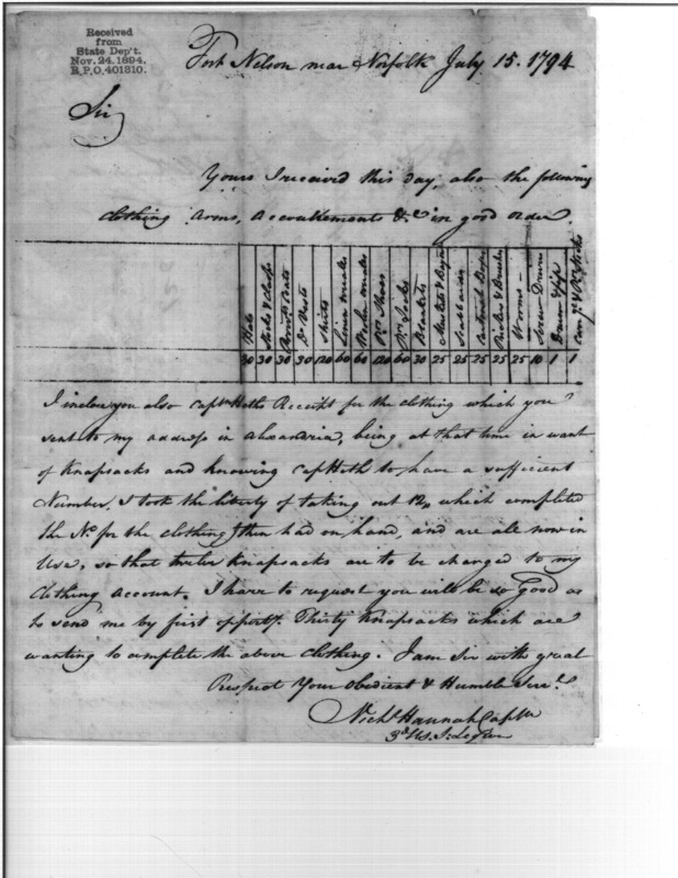 Post Revolutionary War Papers, 1784-1815. (RG94)