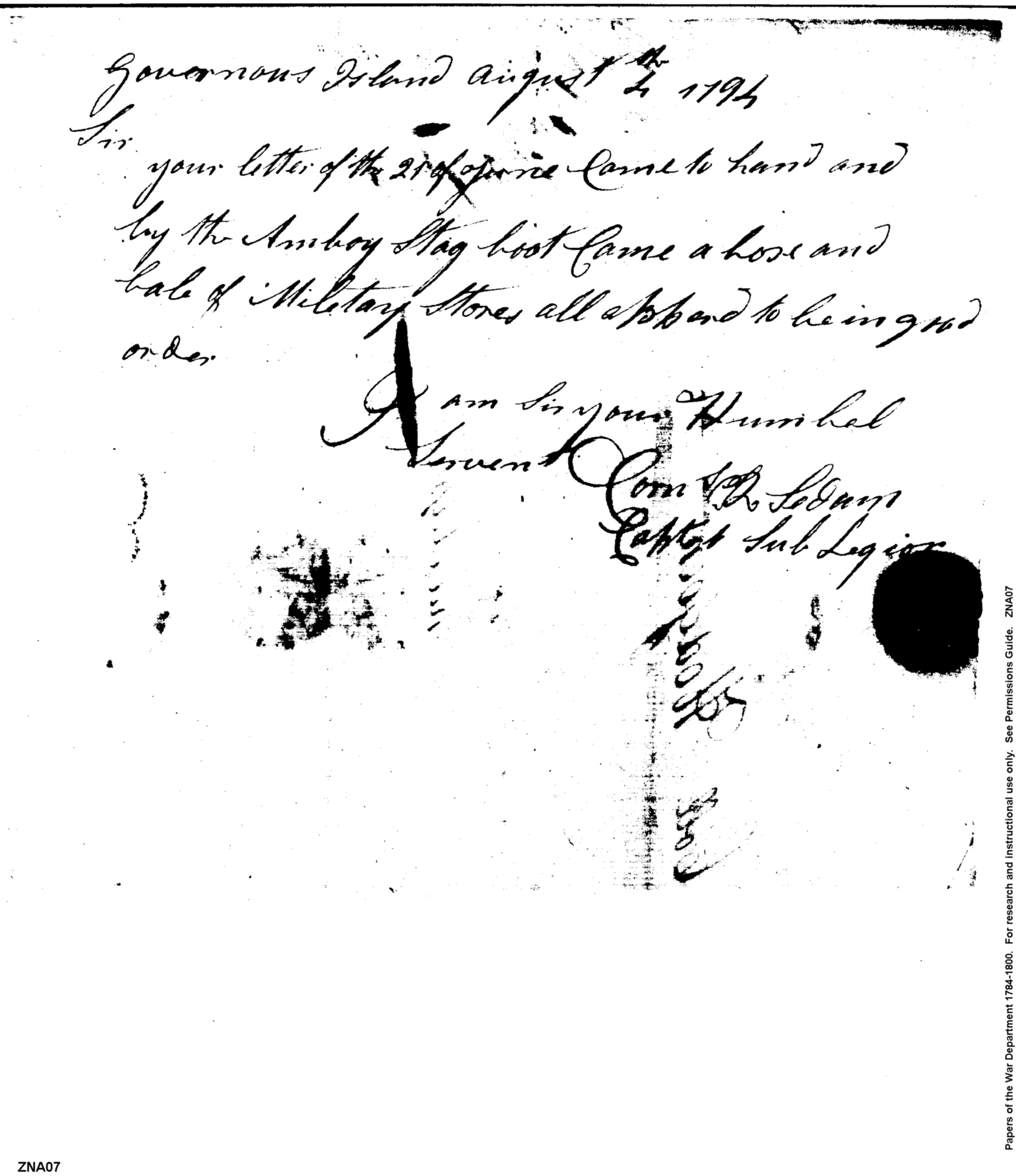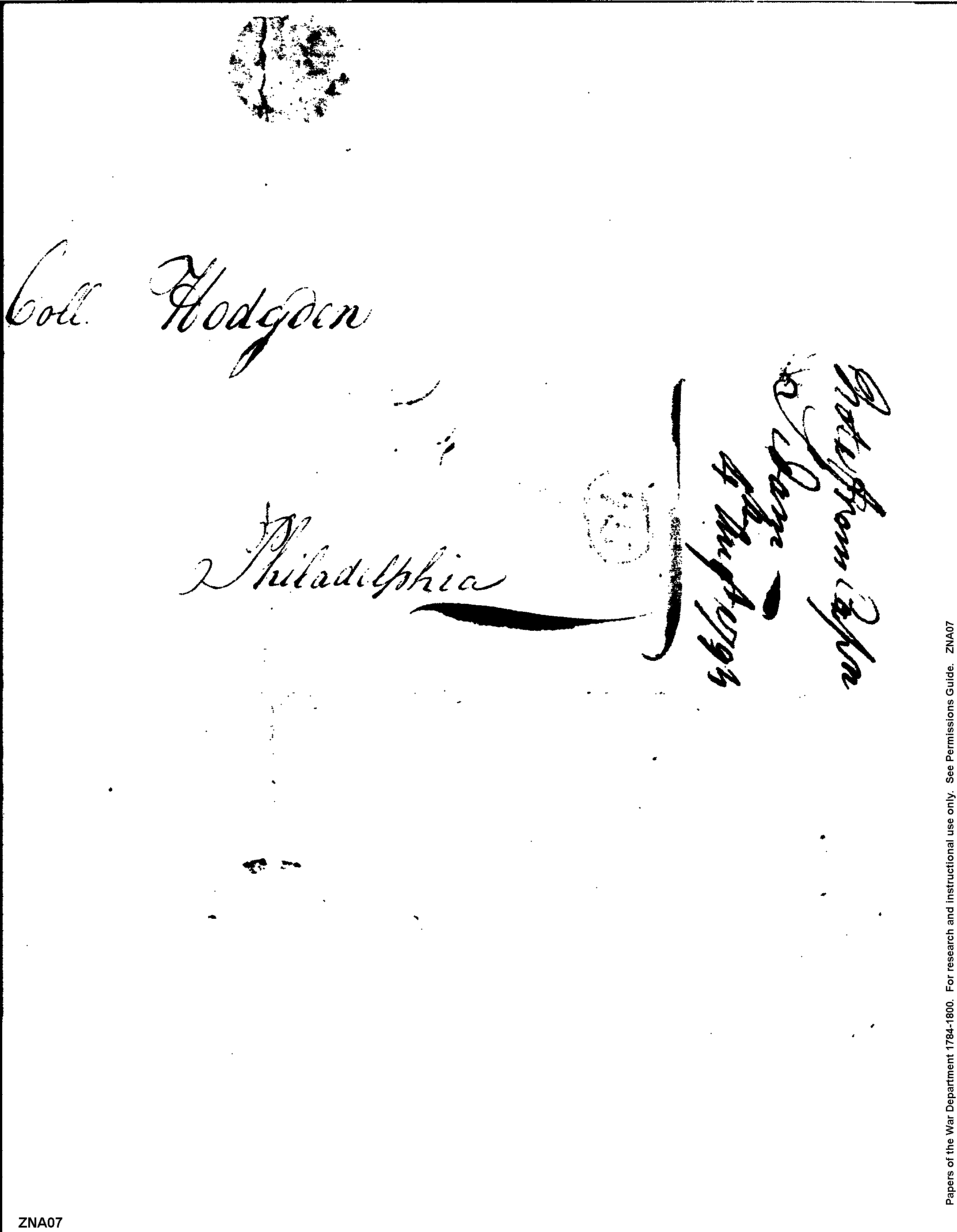 - In source: Collection: Post Revolutionary War Papers, 1784-1815. (RG94)