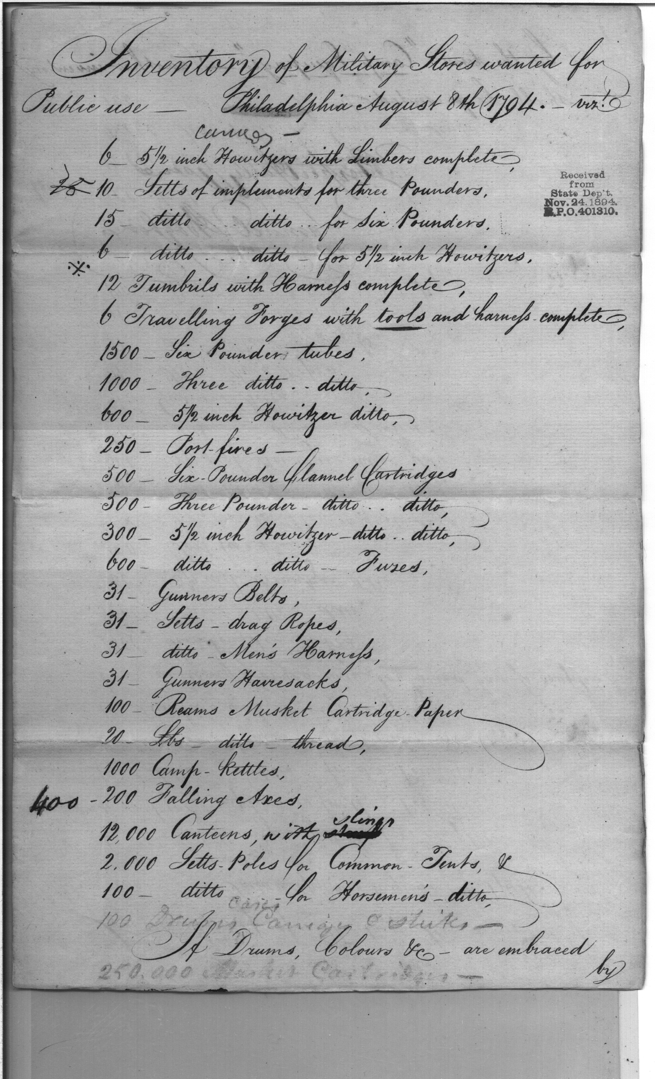 - Document: Inventory of military stores wanted for public use.
