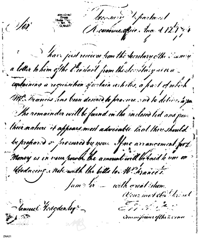 - In source: Collection: Post Revolutionary War Papers, 1784-1815. (RG94)