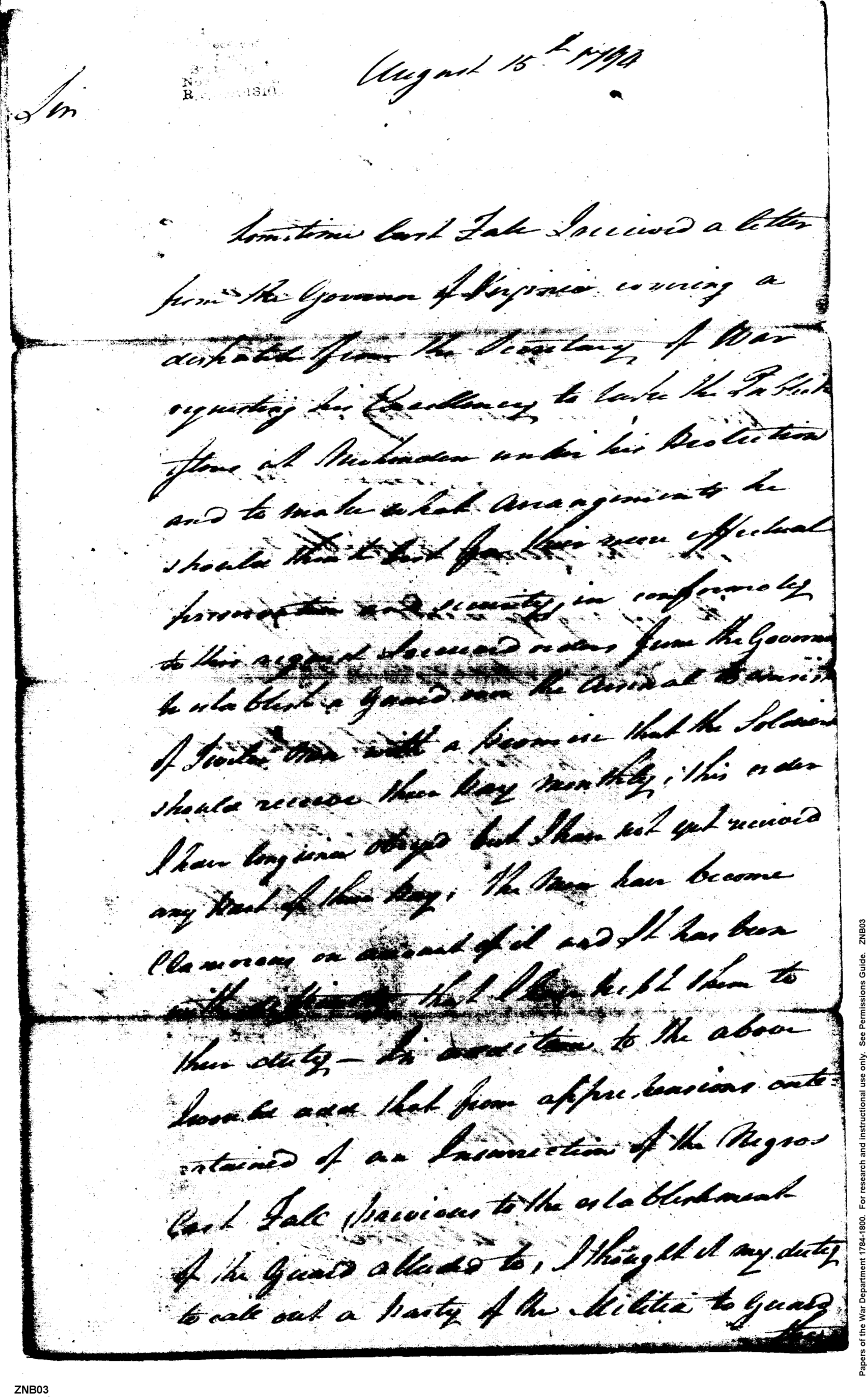 - In source: Collection: Post Revolutionary War Papers, 1784-1815. (RG94)