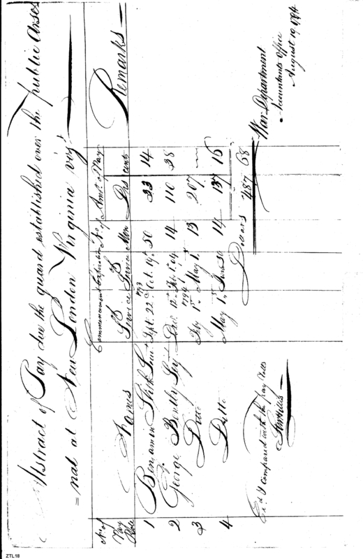 - Document: Abstract of pay due the guard established over the Public Arsenal at New London.