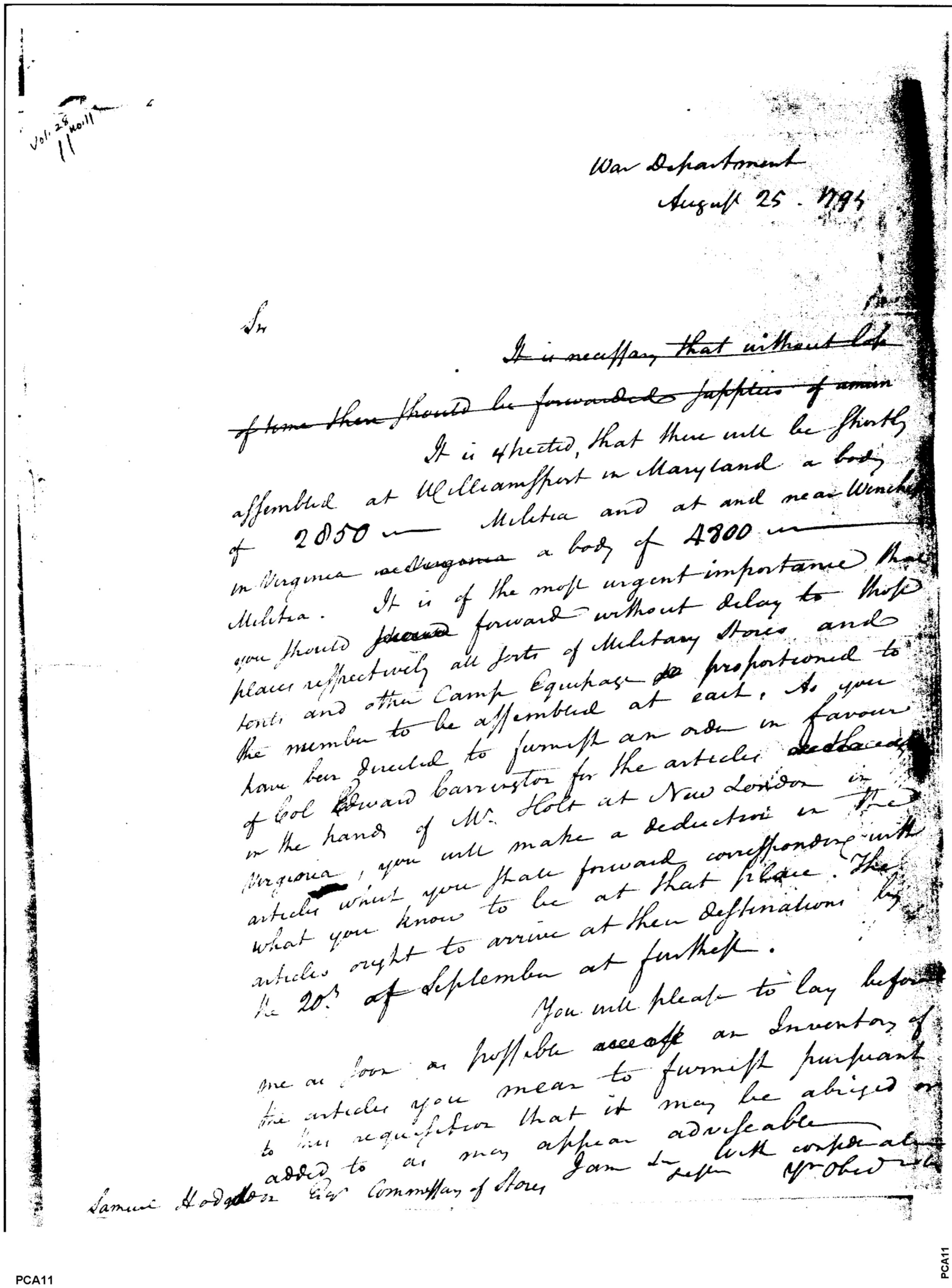Document ViewerMilitary Stores, Tents, & Camp Equipage Needed Immediately
