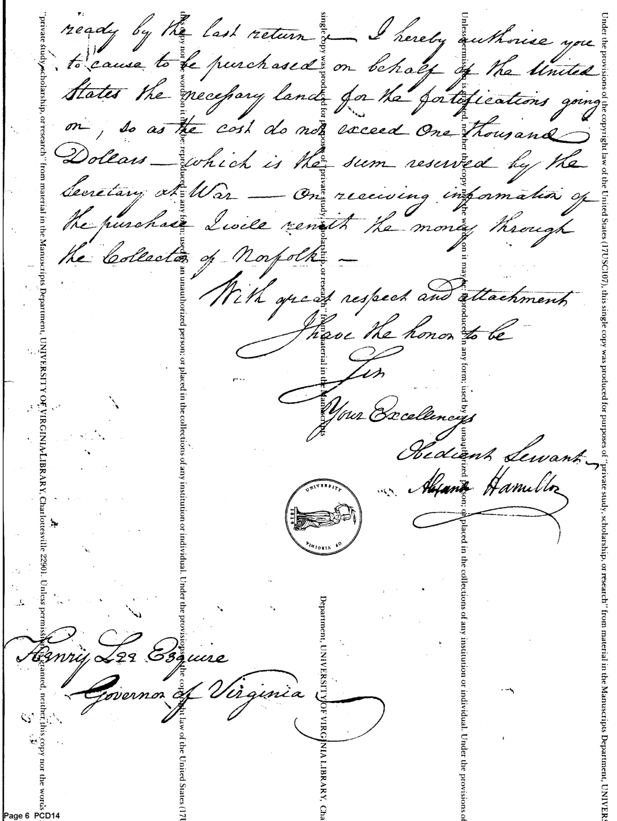 Purchase of Land for Fortifications