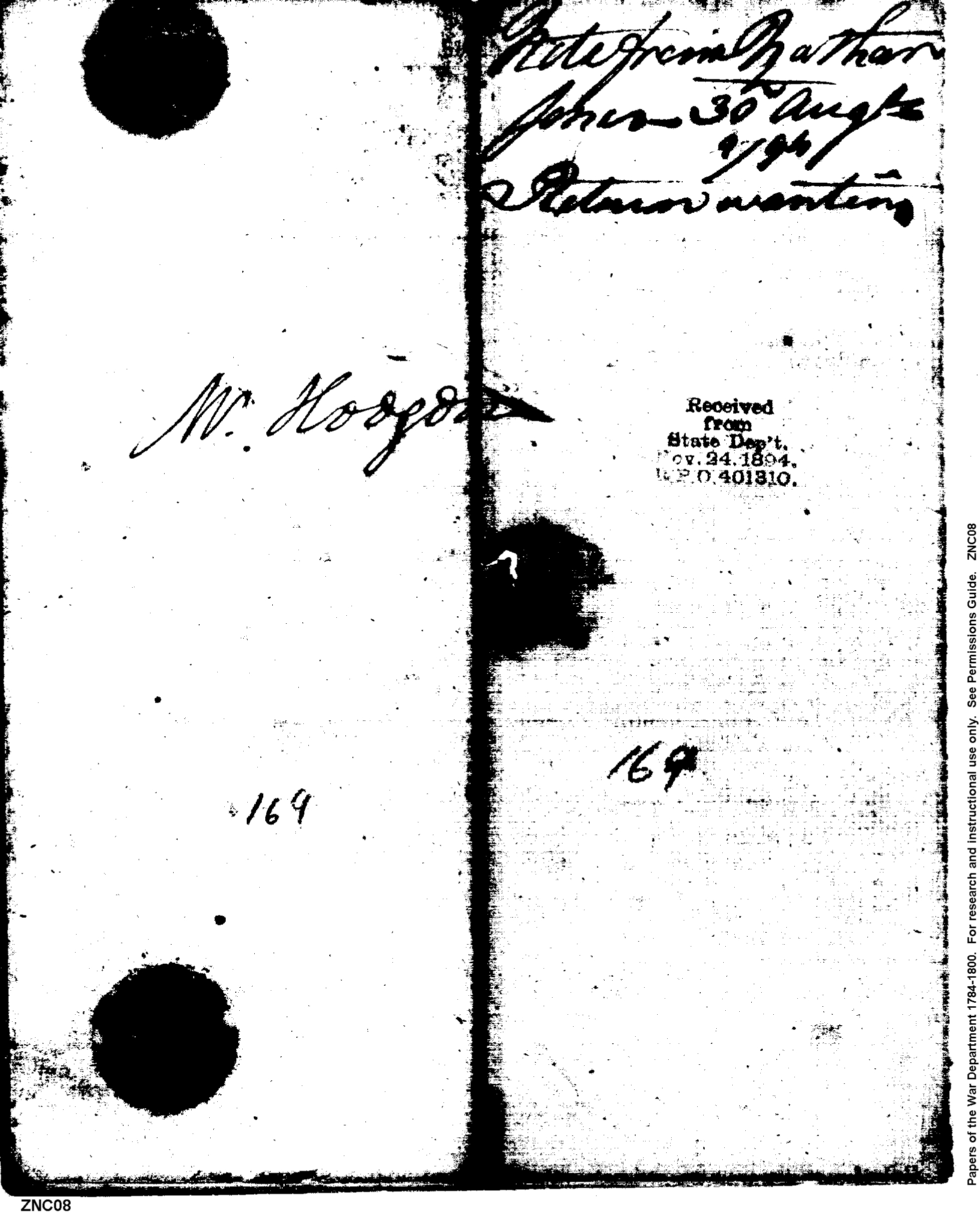 - In source: Collection: Post Revolutionary War Papers, 1784-1815. (RG94)