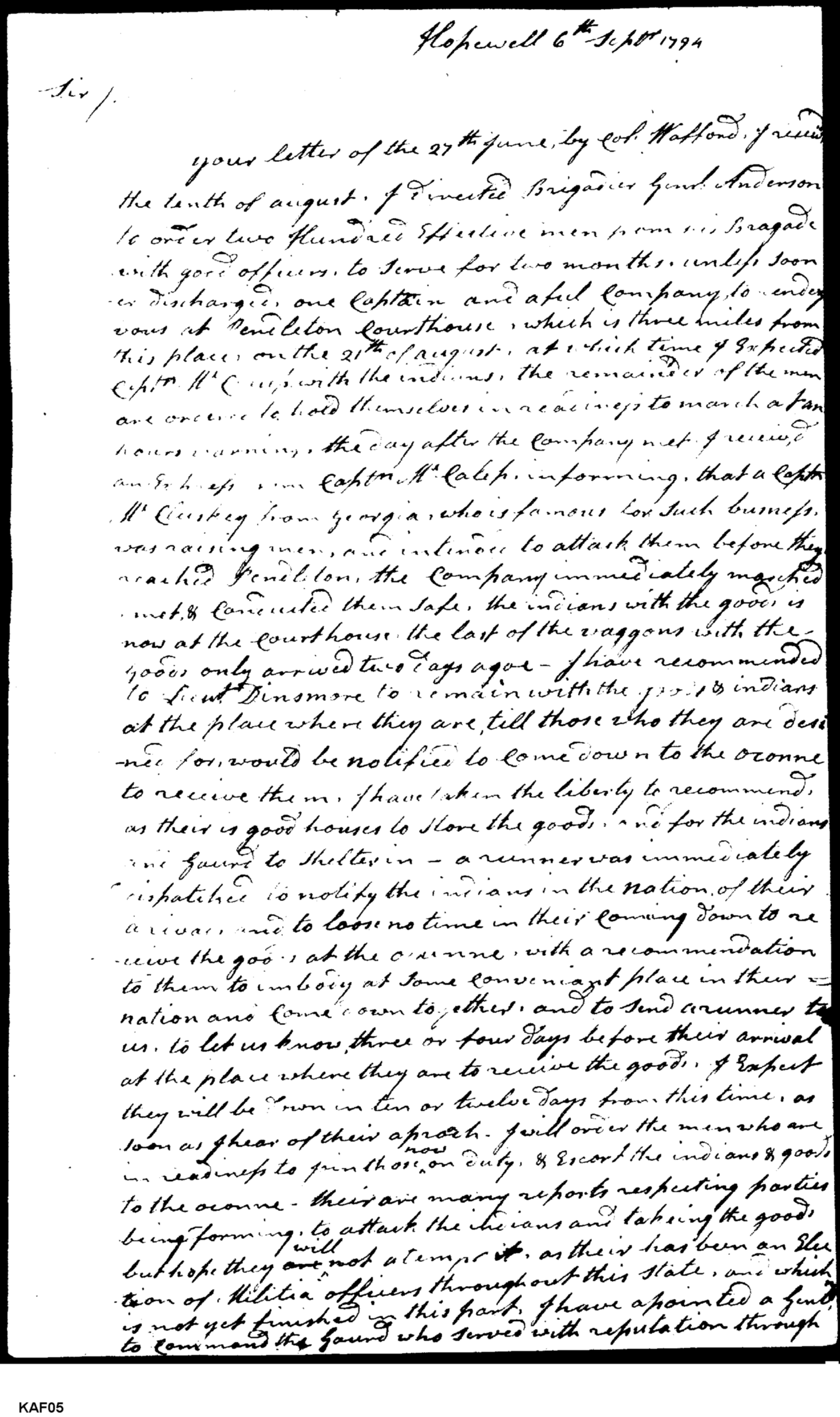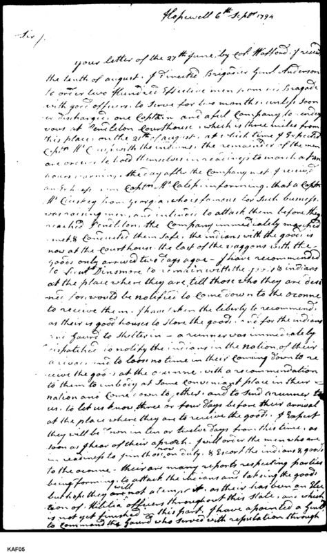 - Document: Letter from Andrew Pickens to Henry Knox on the troops and militia
