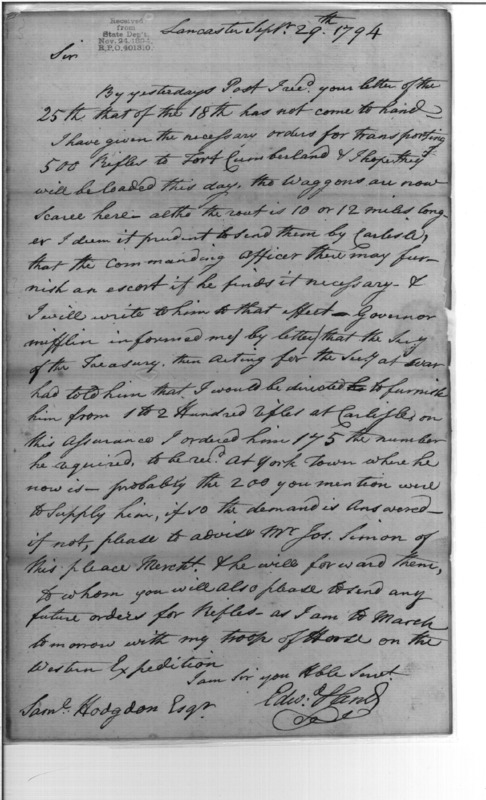 500 Rifles to Fort Cumberland