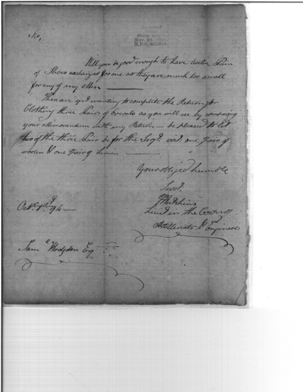 Post Revolutionary War Papers, 1784-1815. (RG94)