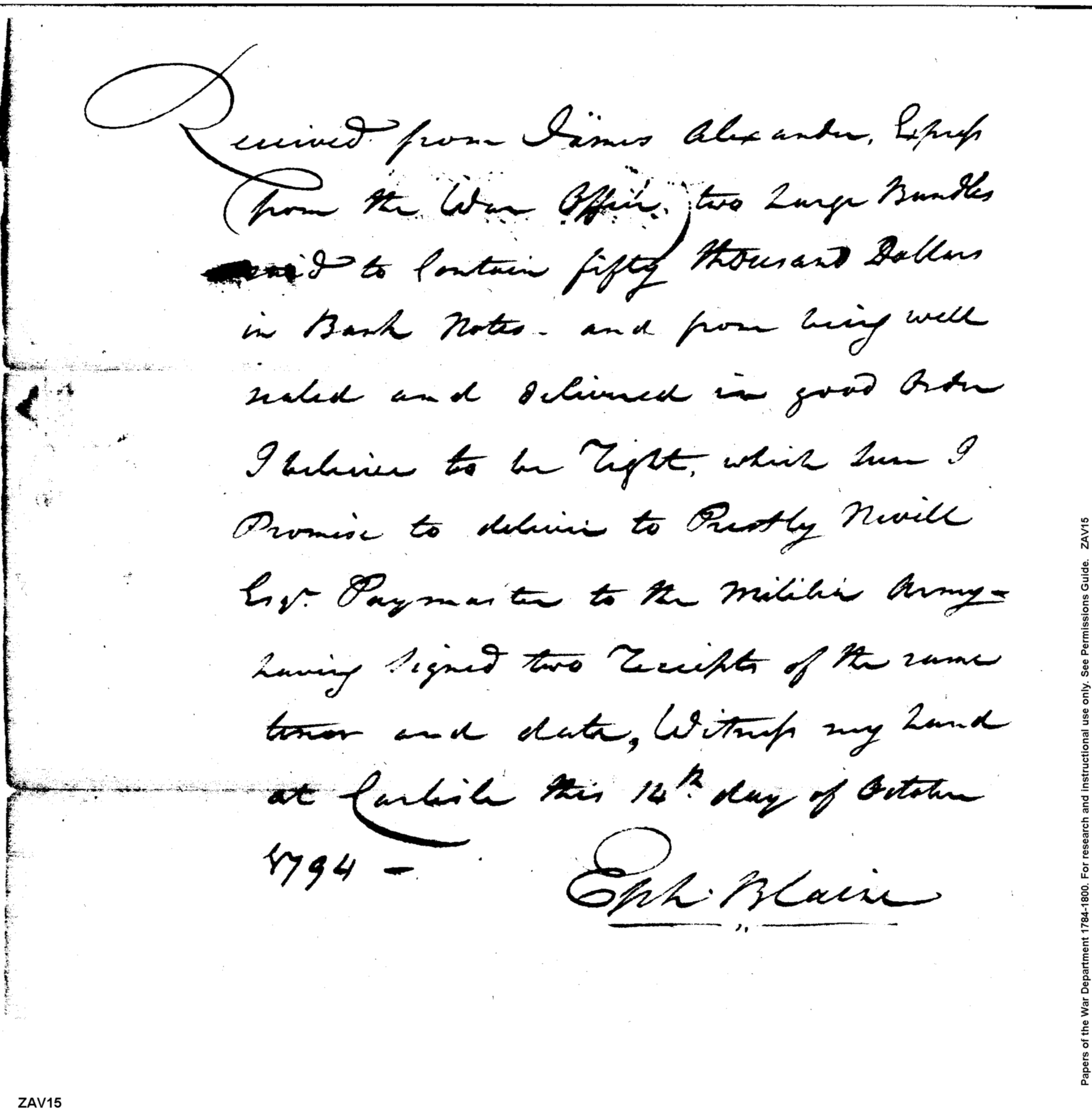 - Document: Receipt of bank notes from Blaine to Alexander