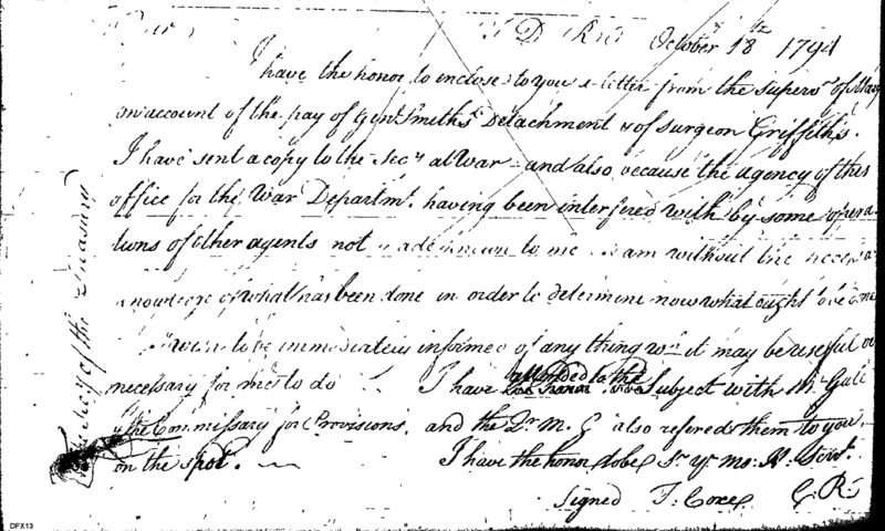 - Document: Requests Direction on Account of General Smith's Detachment of Surgeon Griffiths