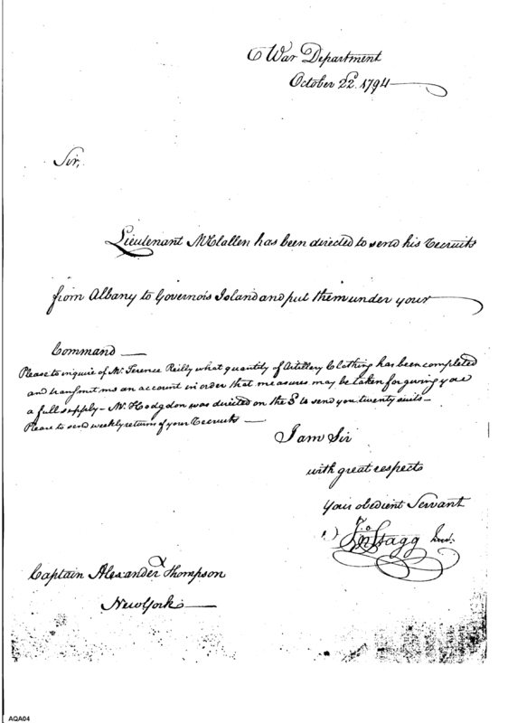 - Document: Artillery Clothing Needed for Recruits from Albany