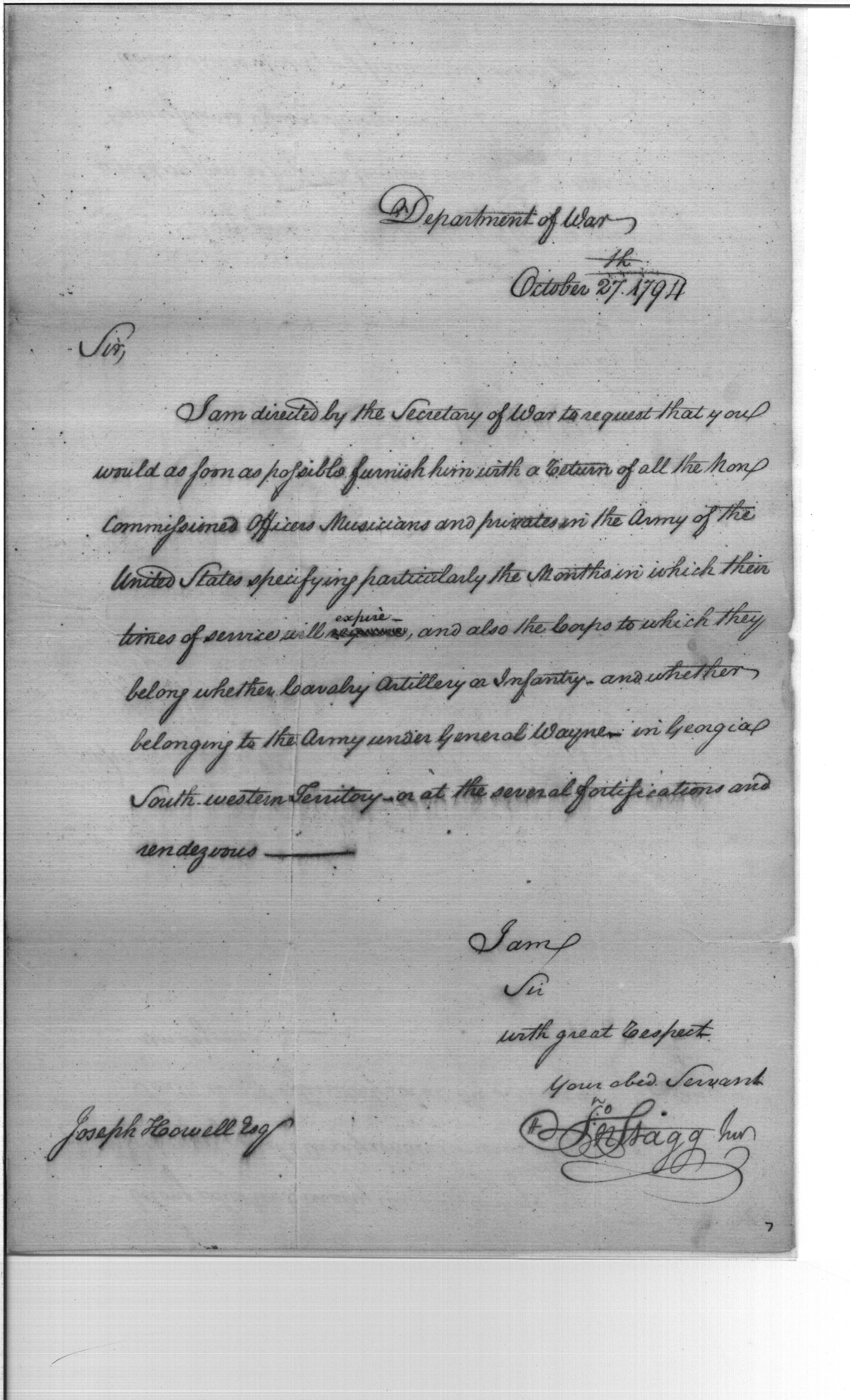 - Document: Request of Secretary of War to Furnish Detailed Information on All Non-Commissioned Officers