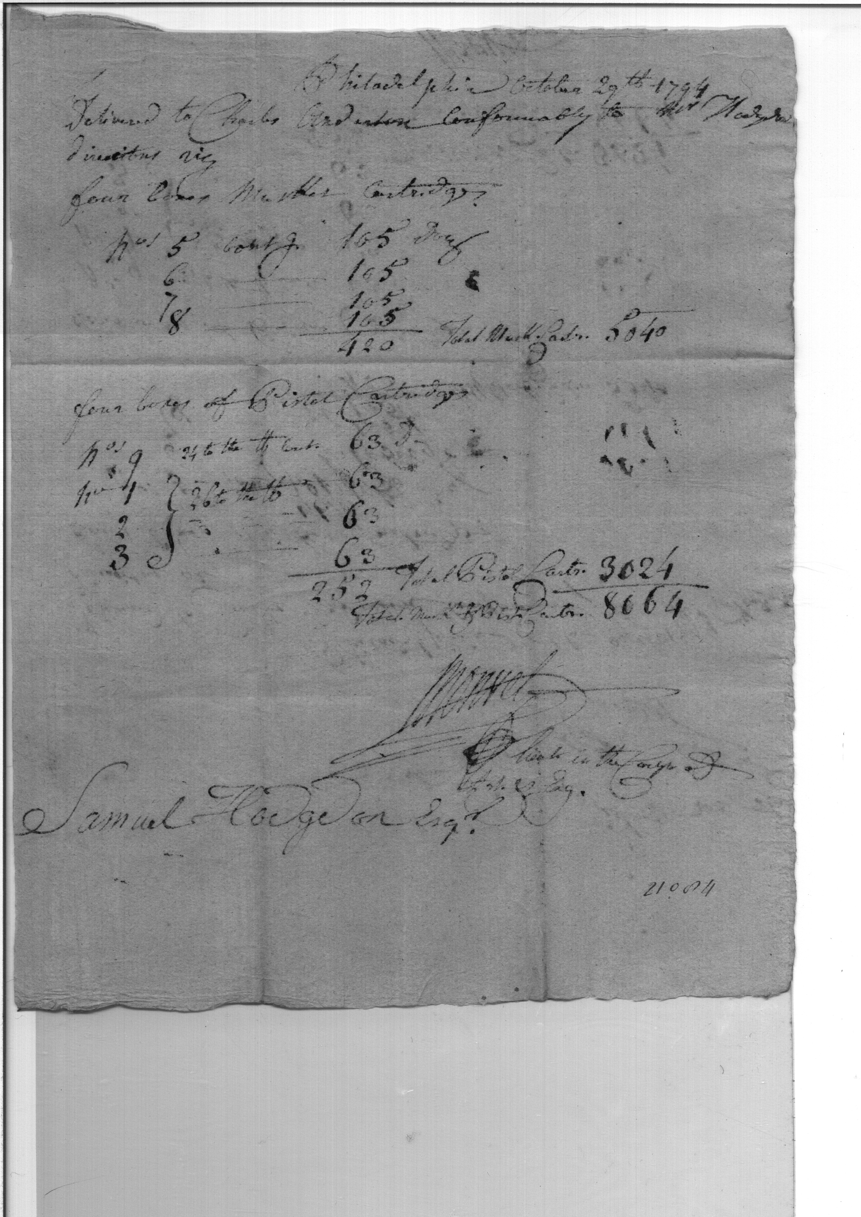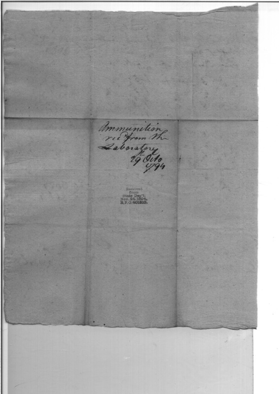 - Document: Ammunition received from the Laboratory Philadelphia