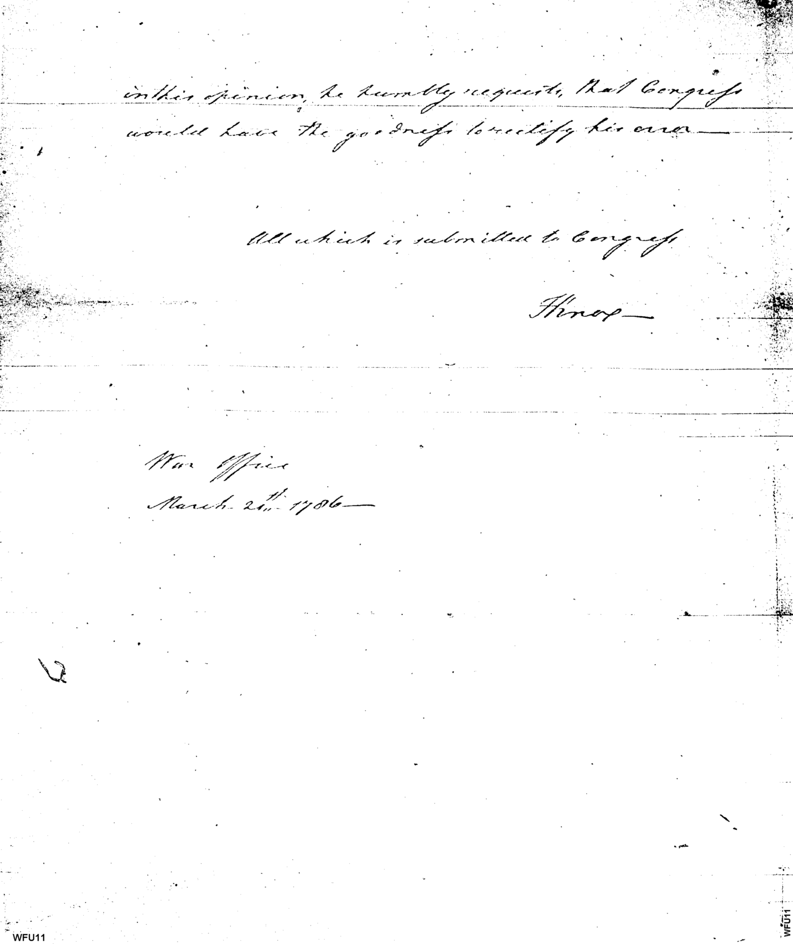 - Document: [The Secretary at War to whom was referenced certain letters from Major John Palsgrave Wyllys to the said Secretary]