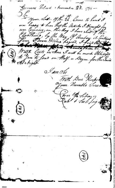 - In source: Collection: Post Revolutionary War Papers, 1784-1815. (RG94)