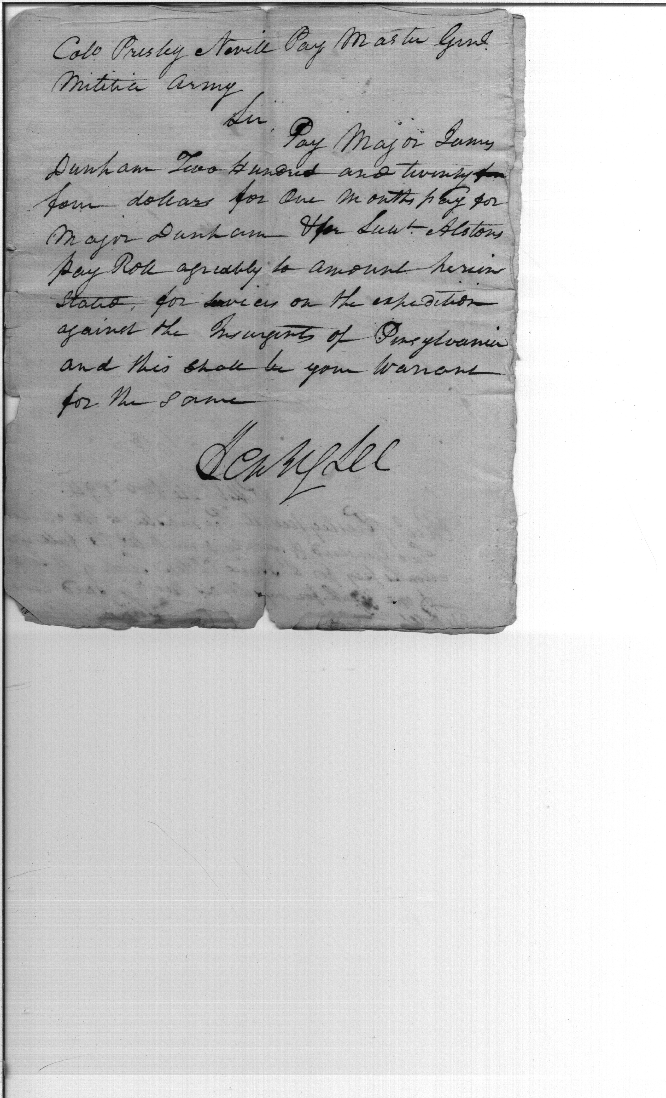 - Document: Payroll for a Detachment of New Jersey Cavalry