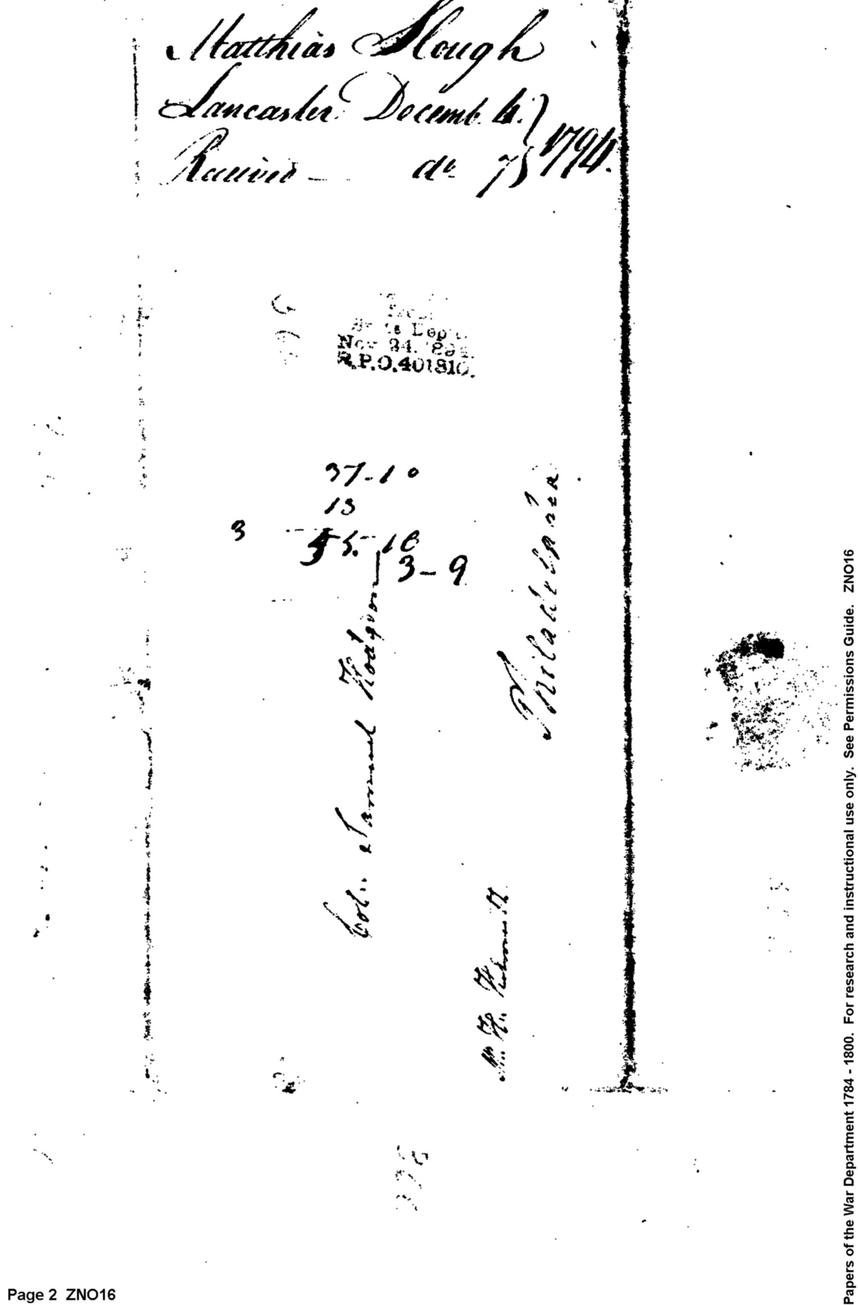 Post Revolutionary War Papers, 1784-1815. (RG94)